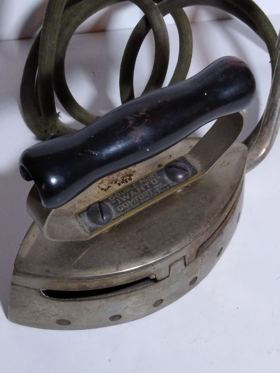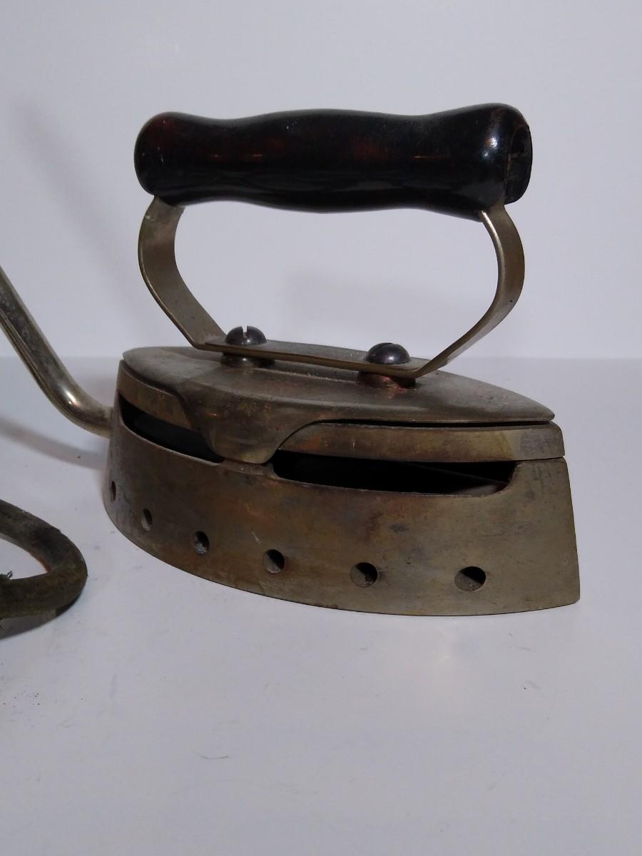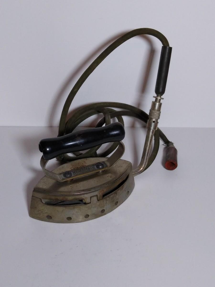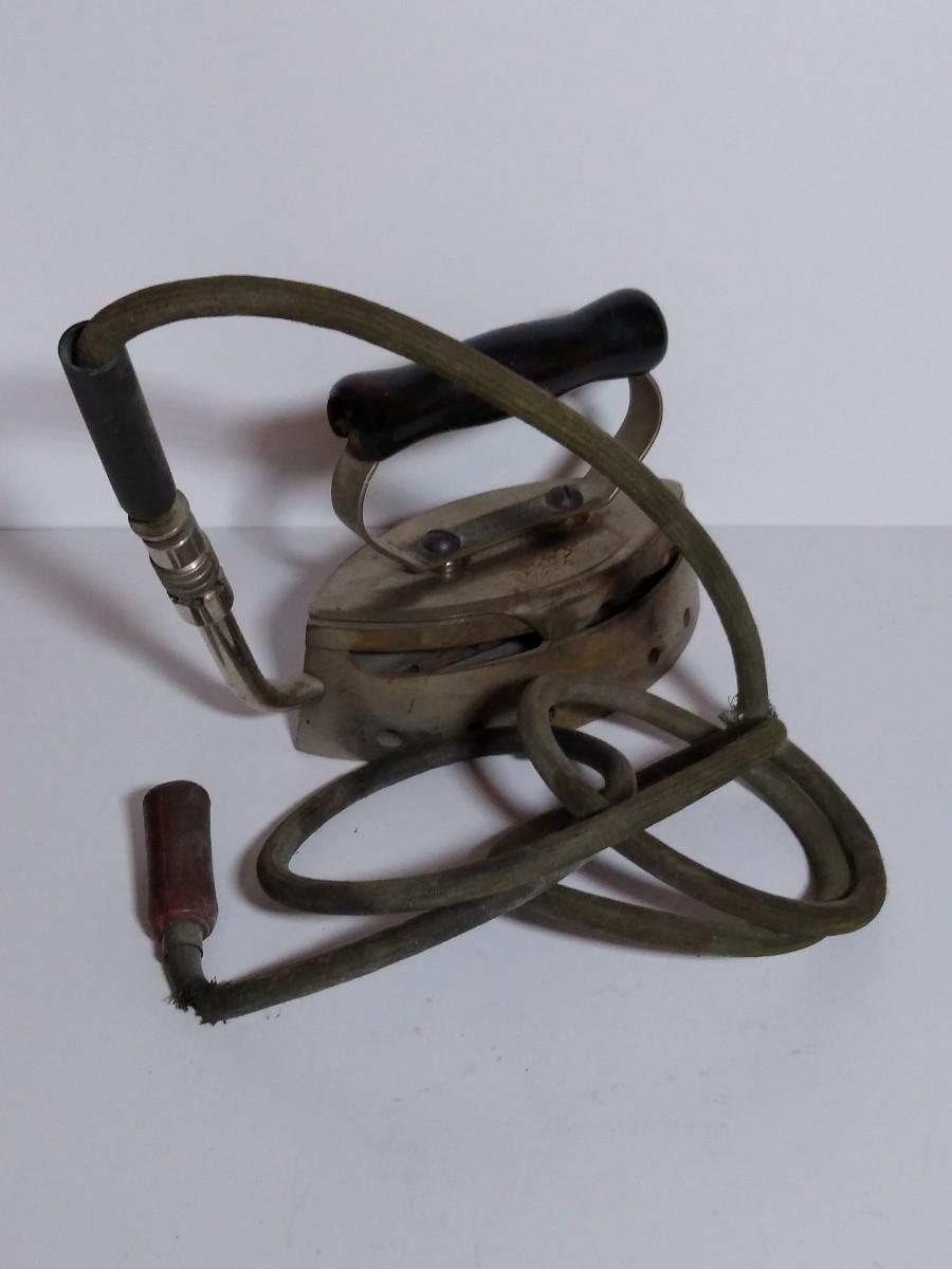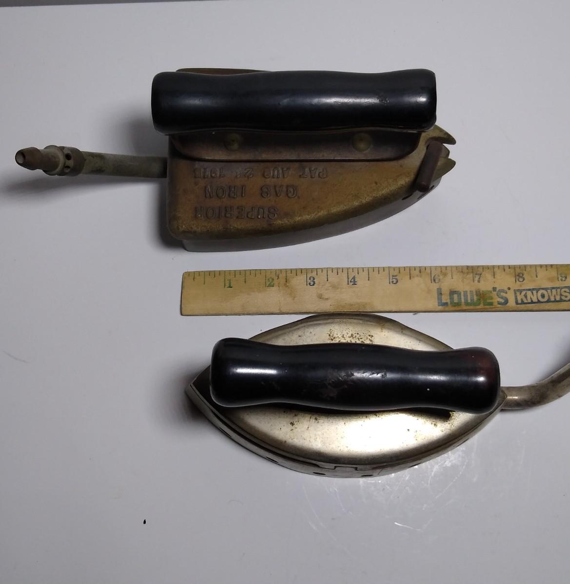 LOT 18S: Wanamaker Superior Gas Iron, Double Point Iwantu Comfort Iron, Coleman Brass Air Pump & Trivets