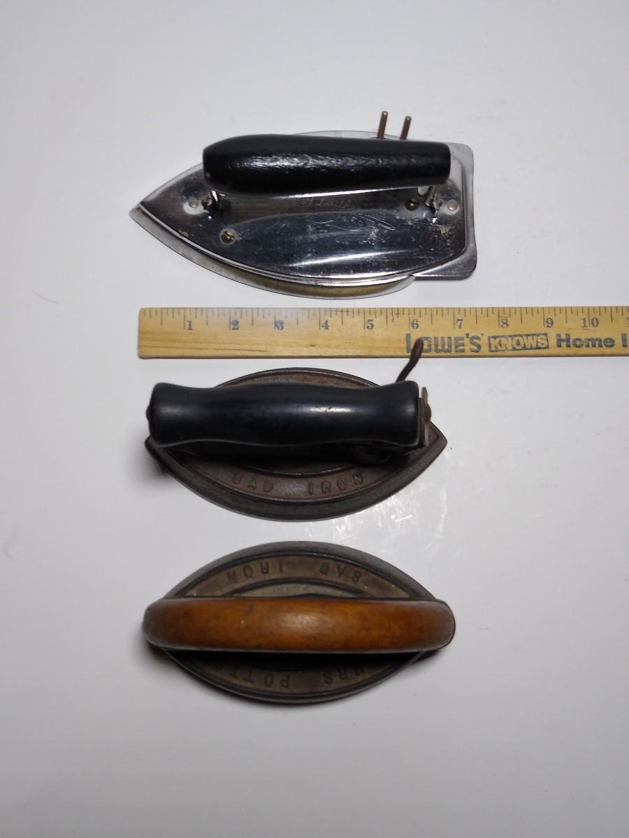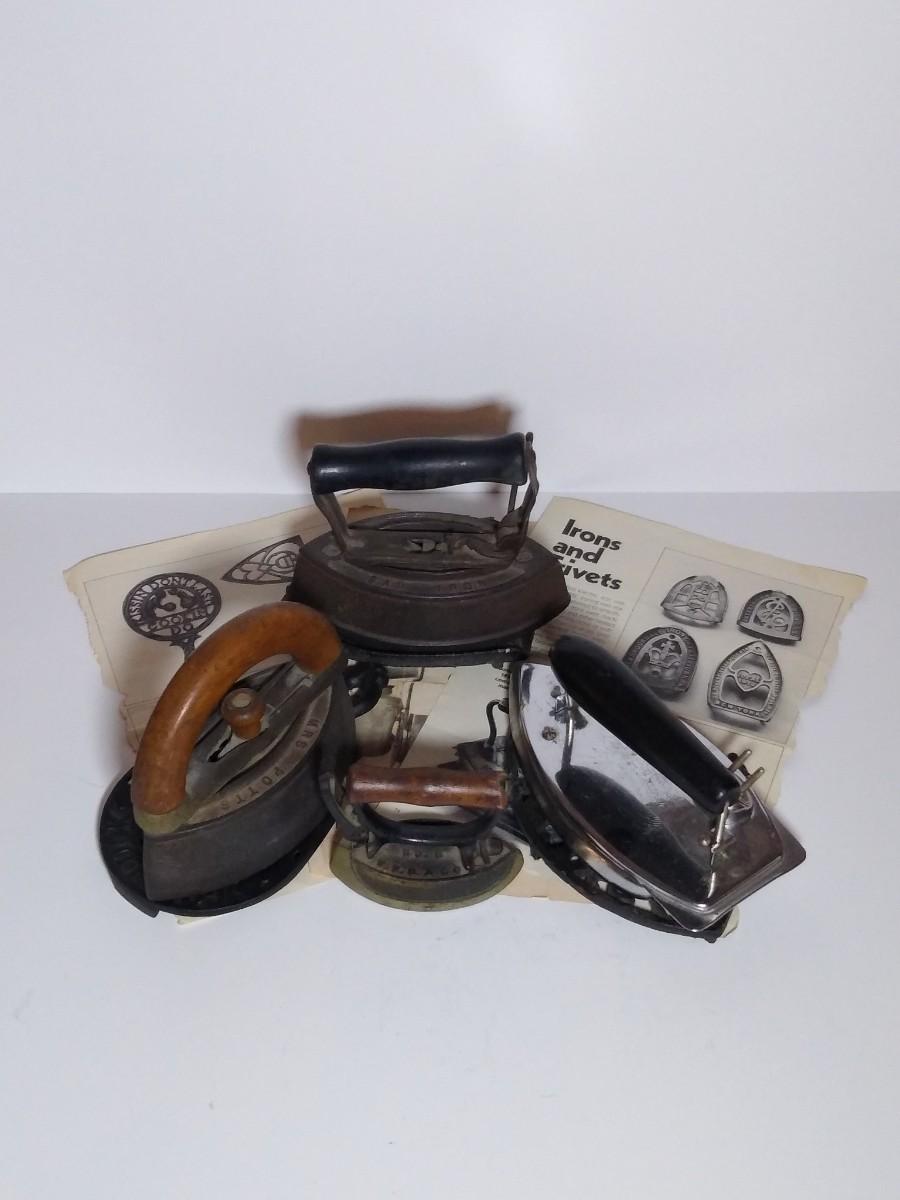 LOT 23S: Fiery Feather Folding Electric Iron with 2 Mrs. Potts Sad Irons & More