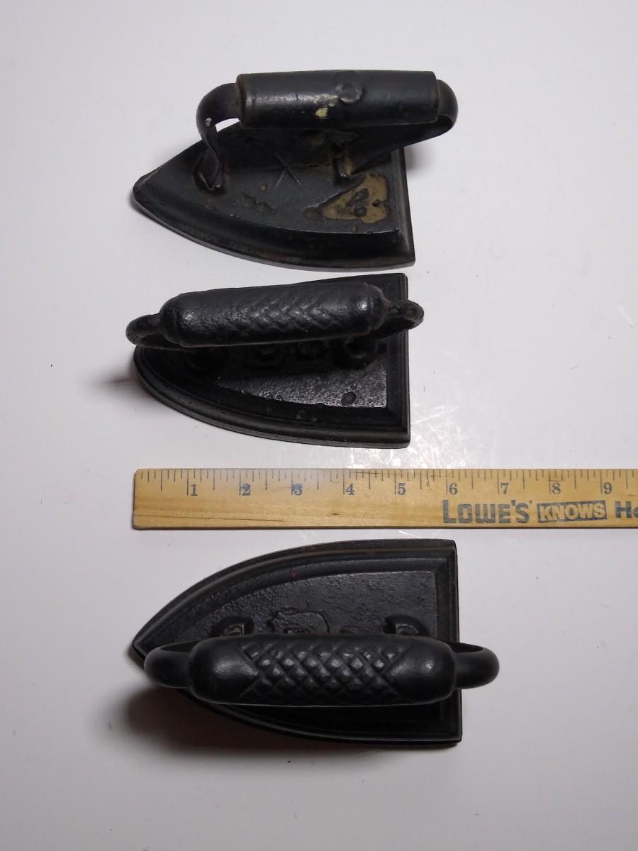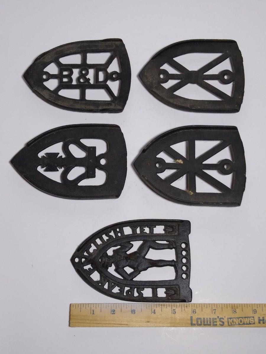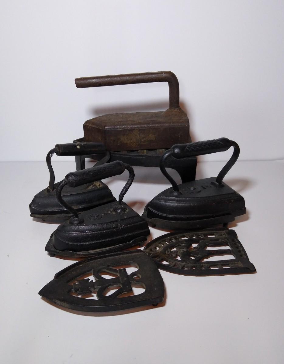LOT 24S: Set of 4 Antique Cast Iron Sad Irons with Trivets
