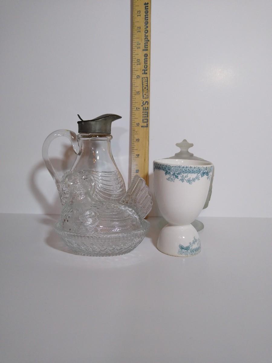 LOT 27S: 19th Century Lincoln Drape Syrup Pitcher, Indiana Glass Hen-on-Nest Dish & More