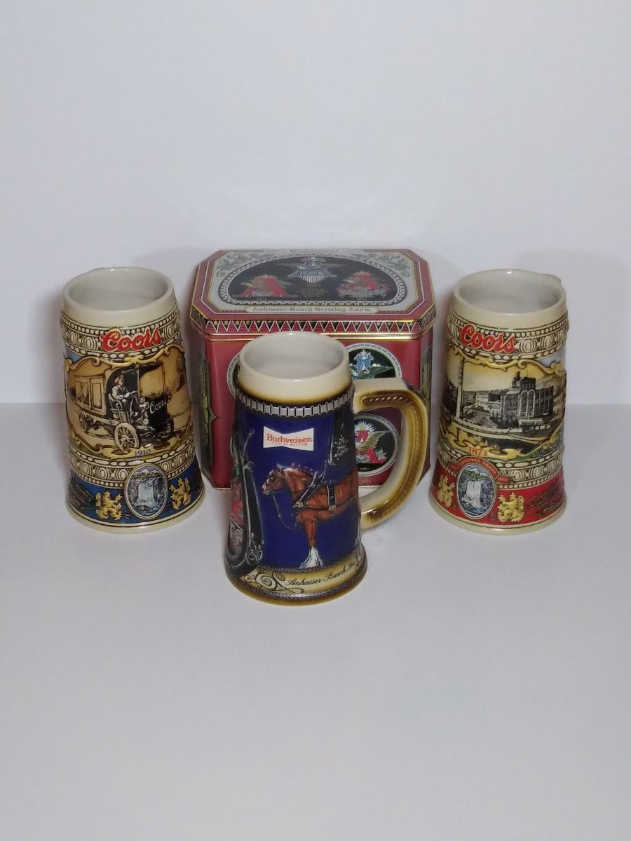 LOT 31S: Budweiser 3D Clydesdale Stein w/ Coors 1988 & 1989 Collectible Steins