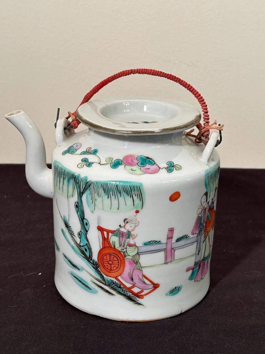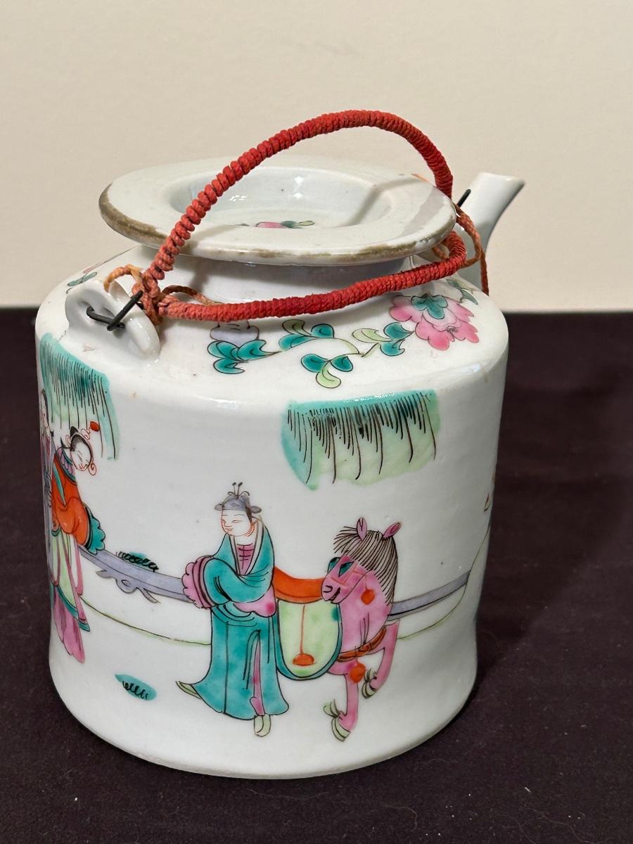 Decorative tea set including extra tea pots.