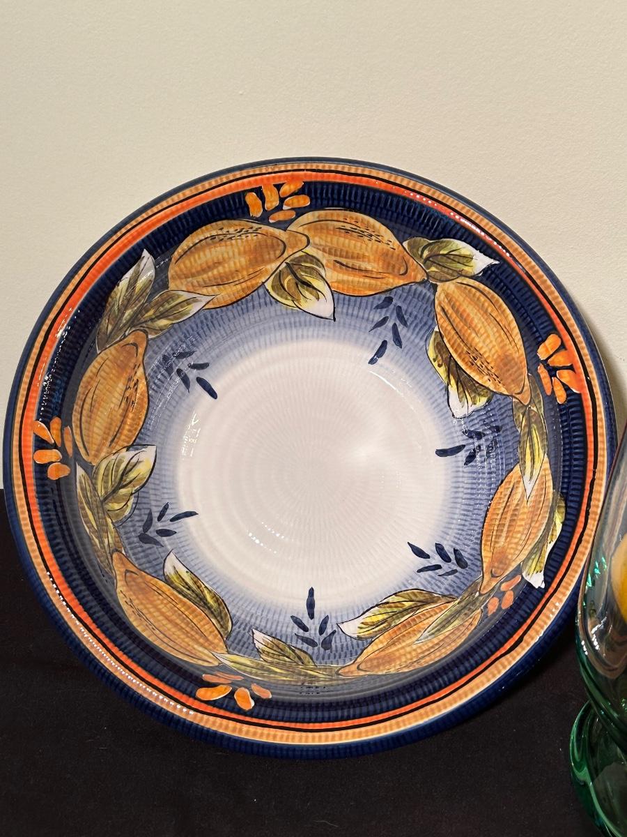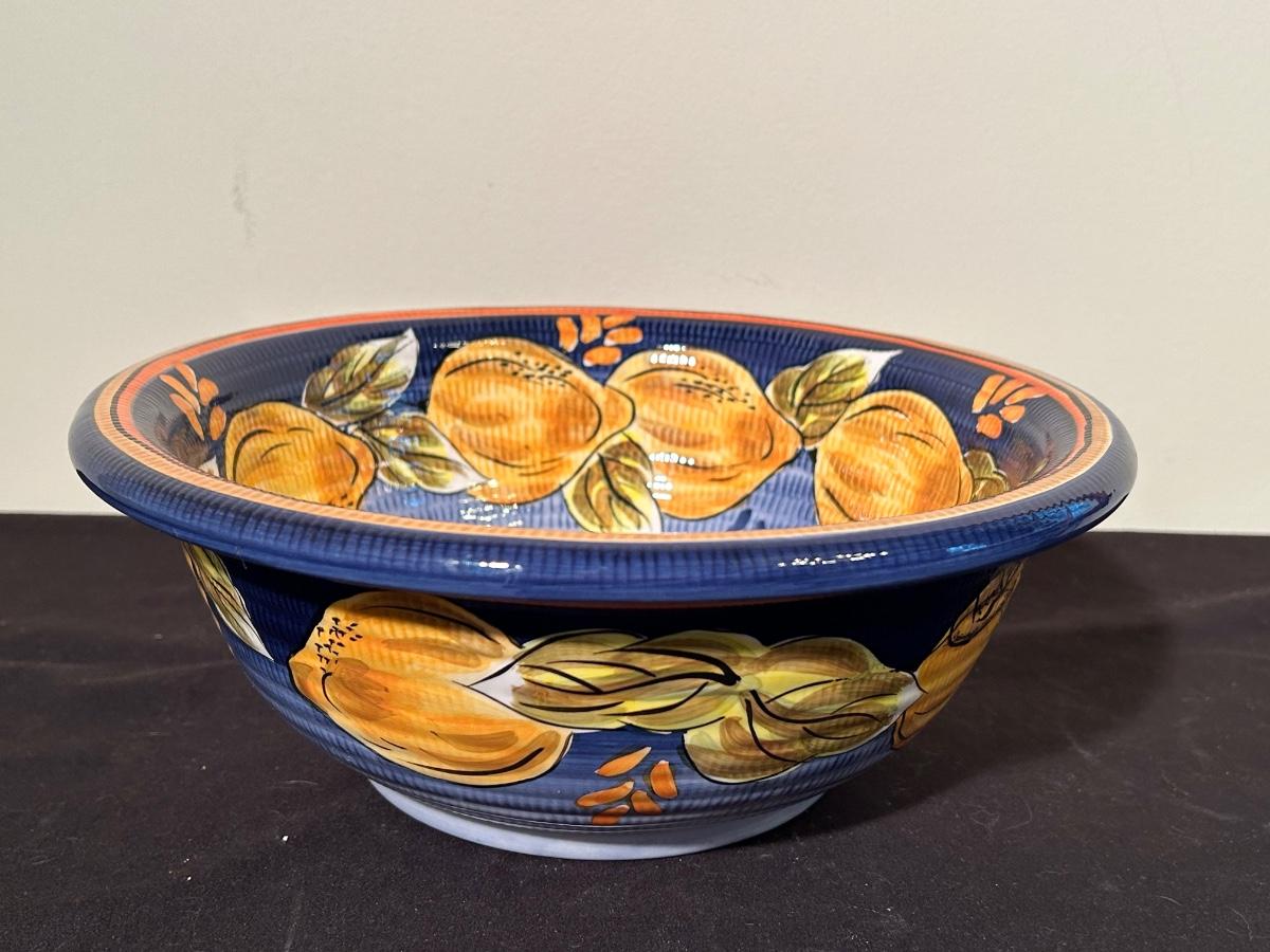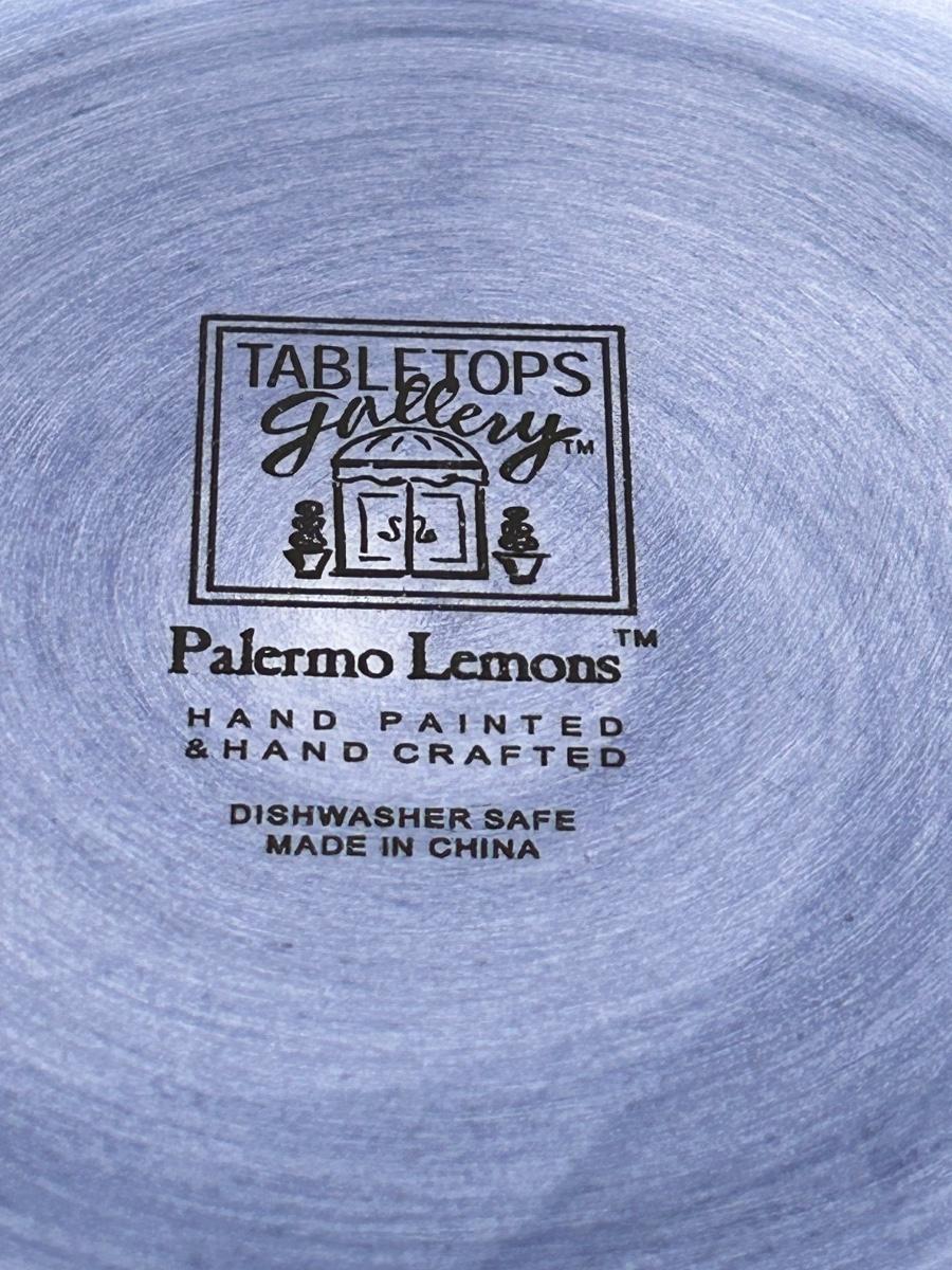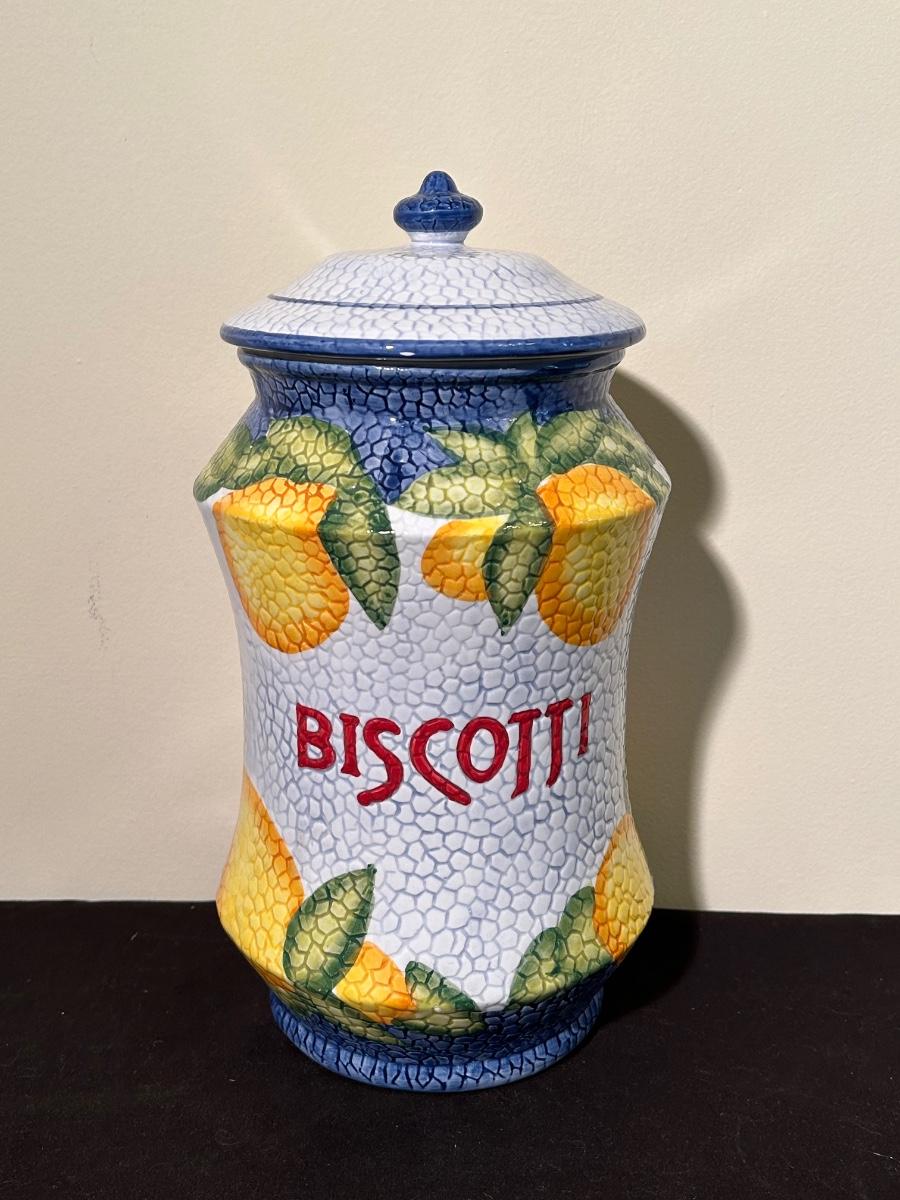 Lemon themed home goods including biscotti jar, artificial lemons, large bowl chalk board and more.