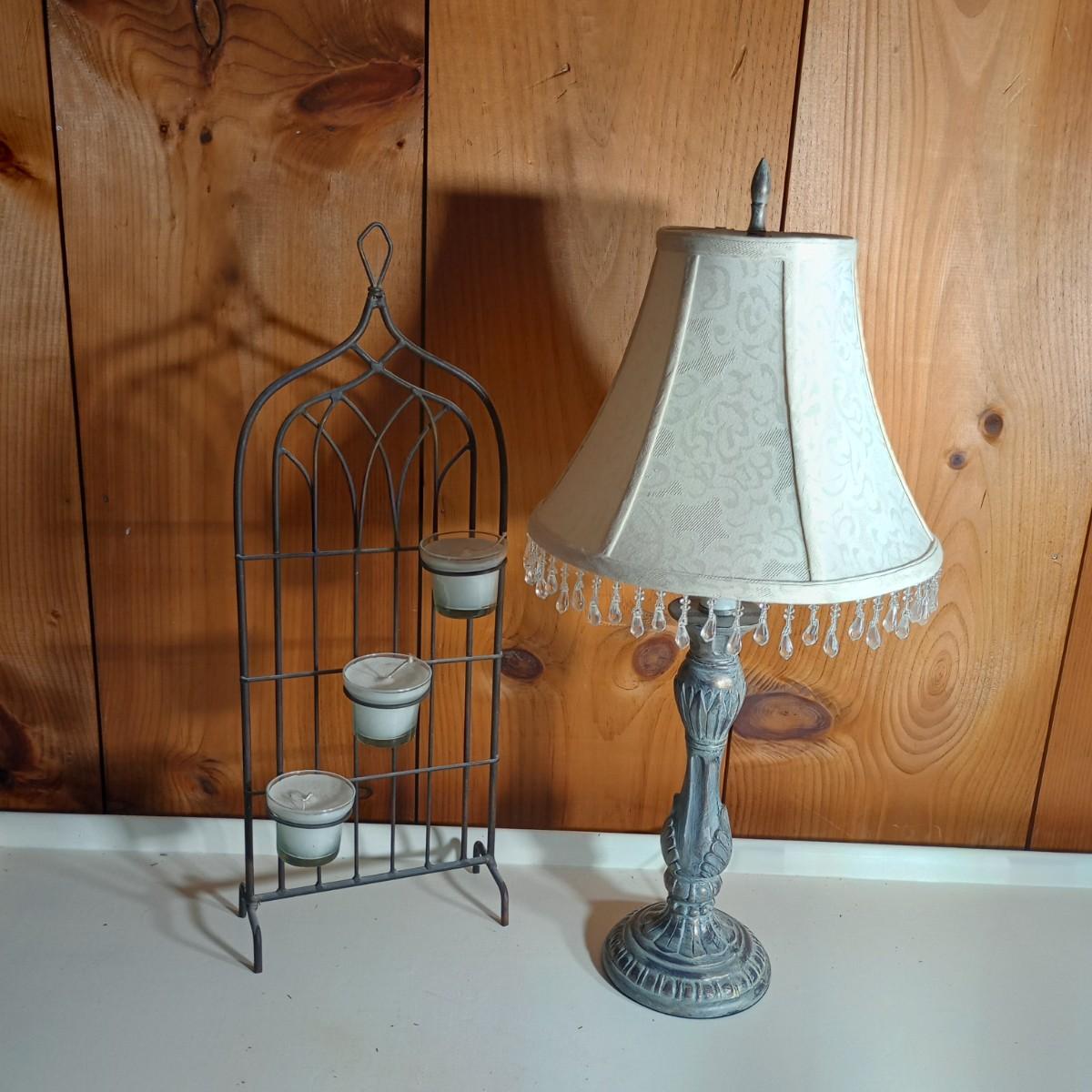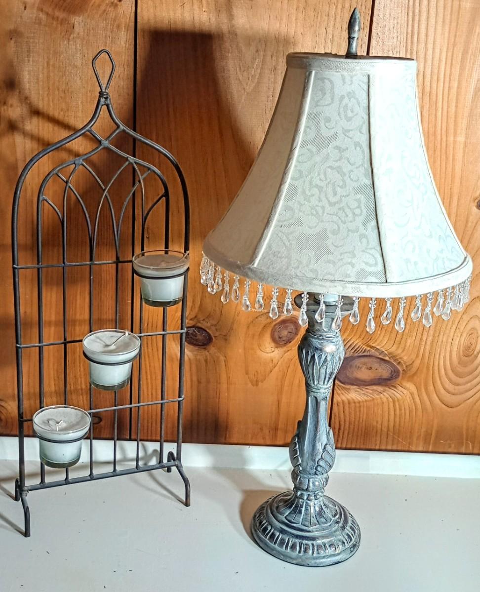 LOT 88M: Vintage Lamp and Wrought Iron Candle Holder