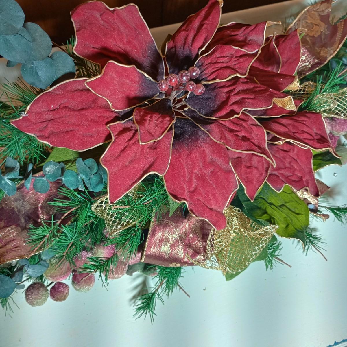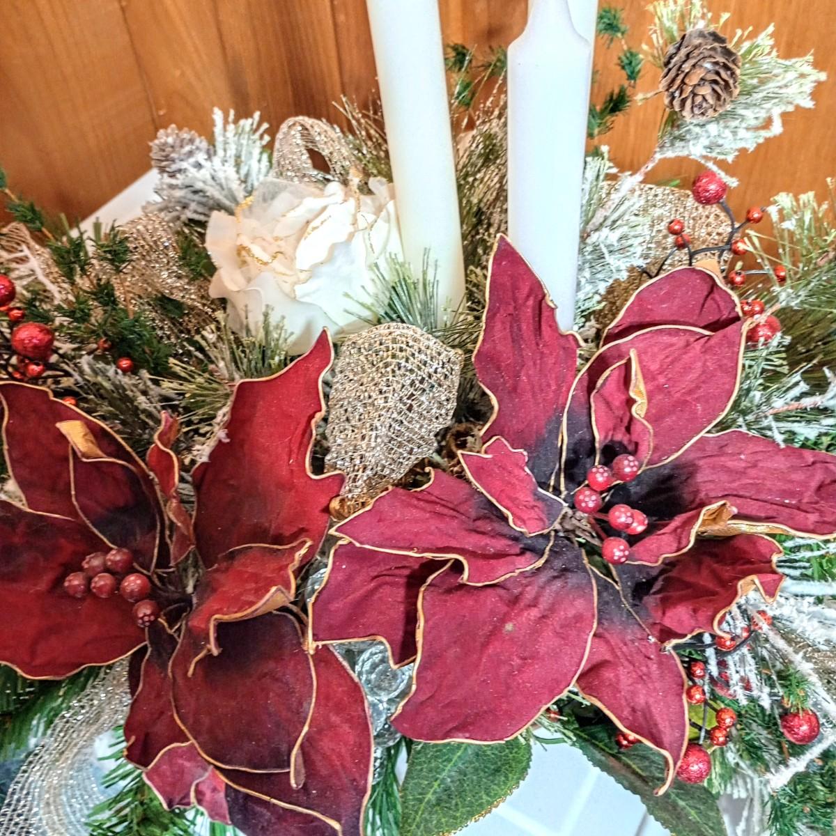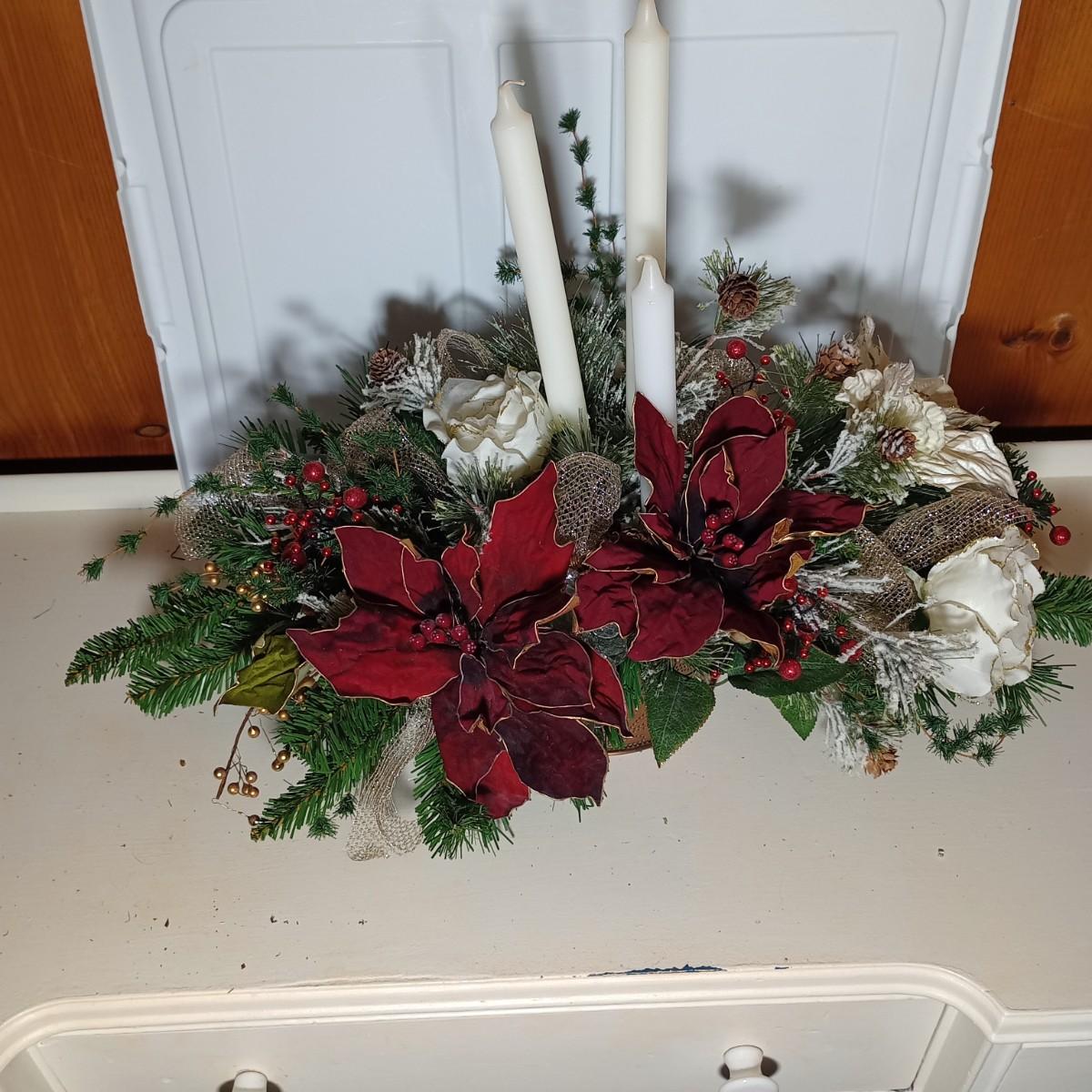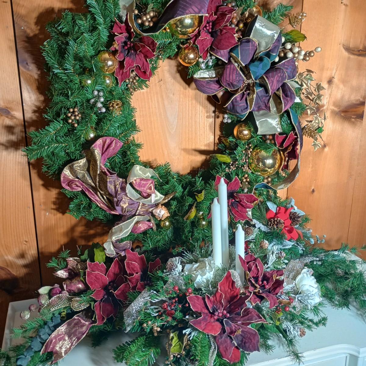 LOT 92M: Large Christmas Wreath, Two Christmas Centerpieces, and Christmas Greenery Decoration