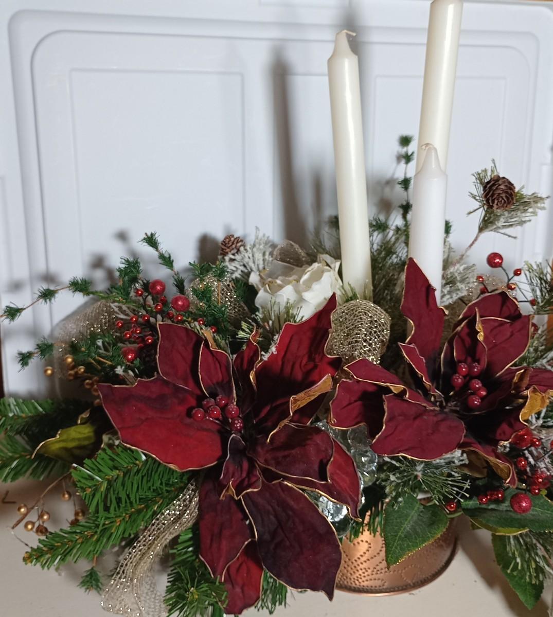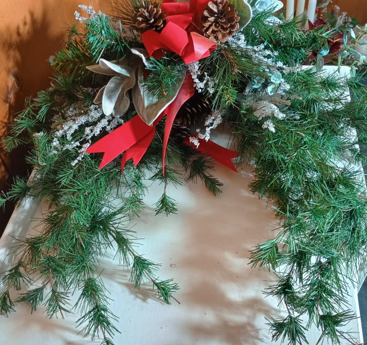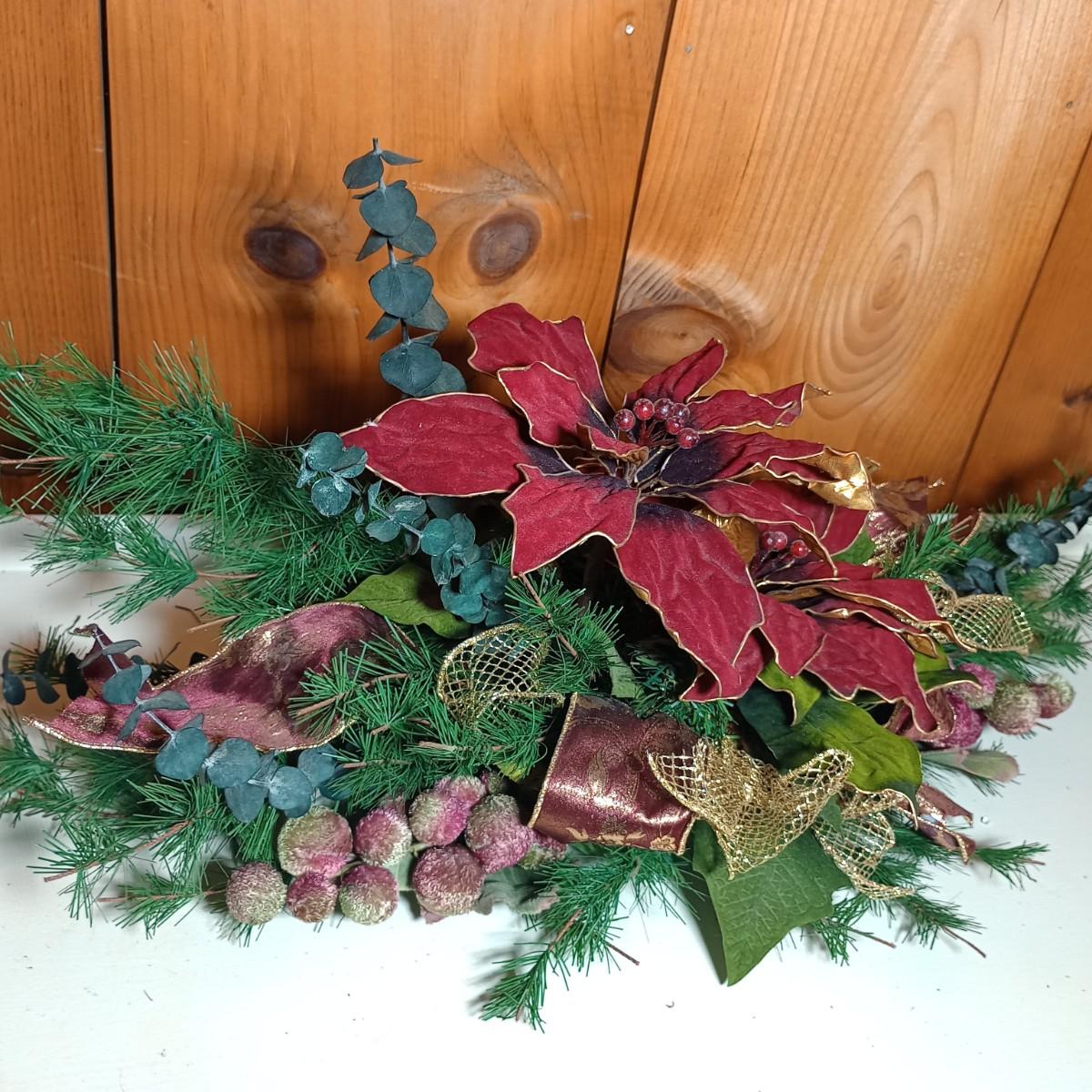LOT 92M: Large Christmas Wreath, Two Christmas Centerpieces, and Christmas Greenery Decoration