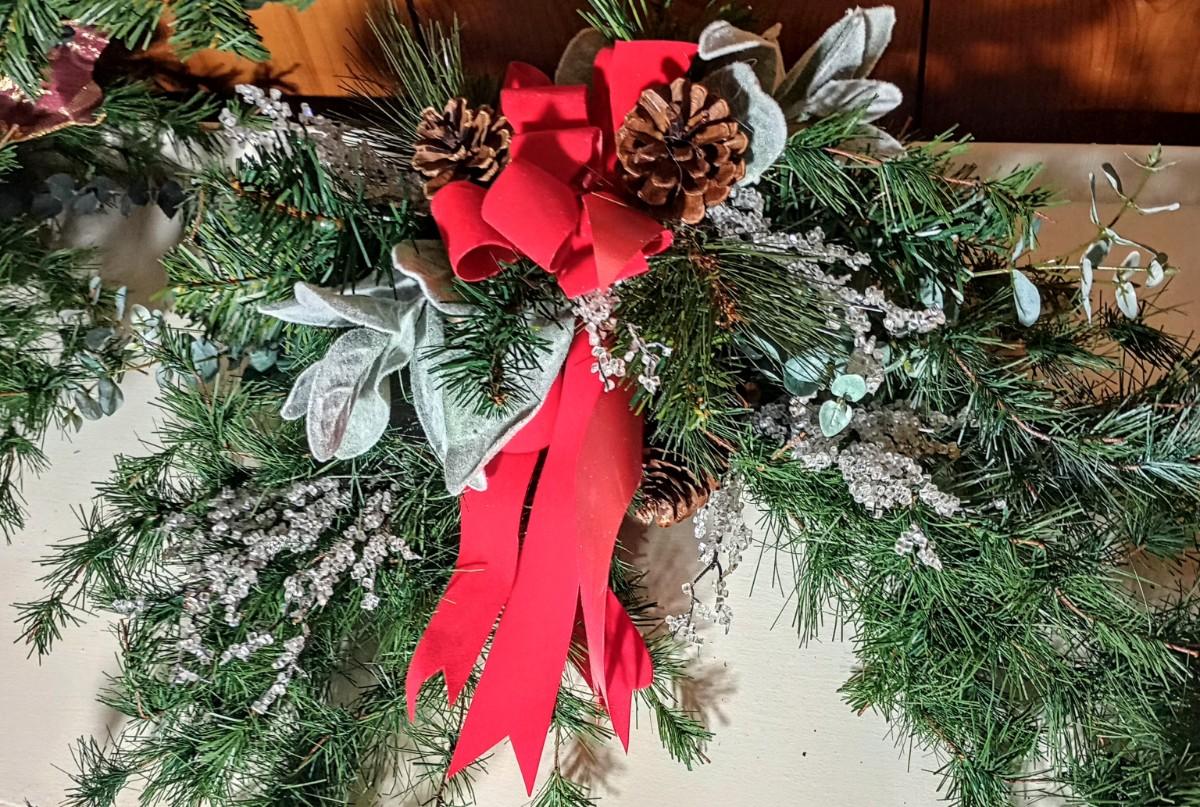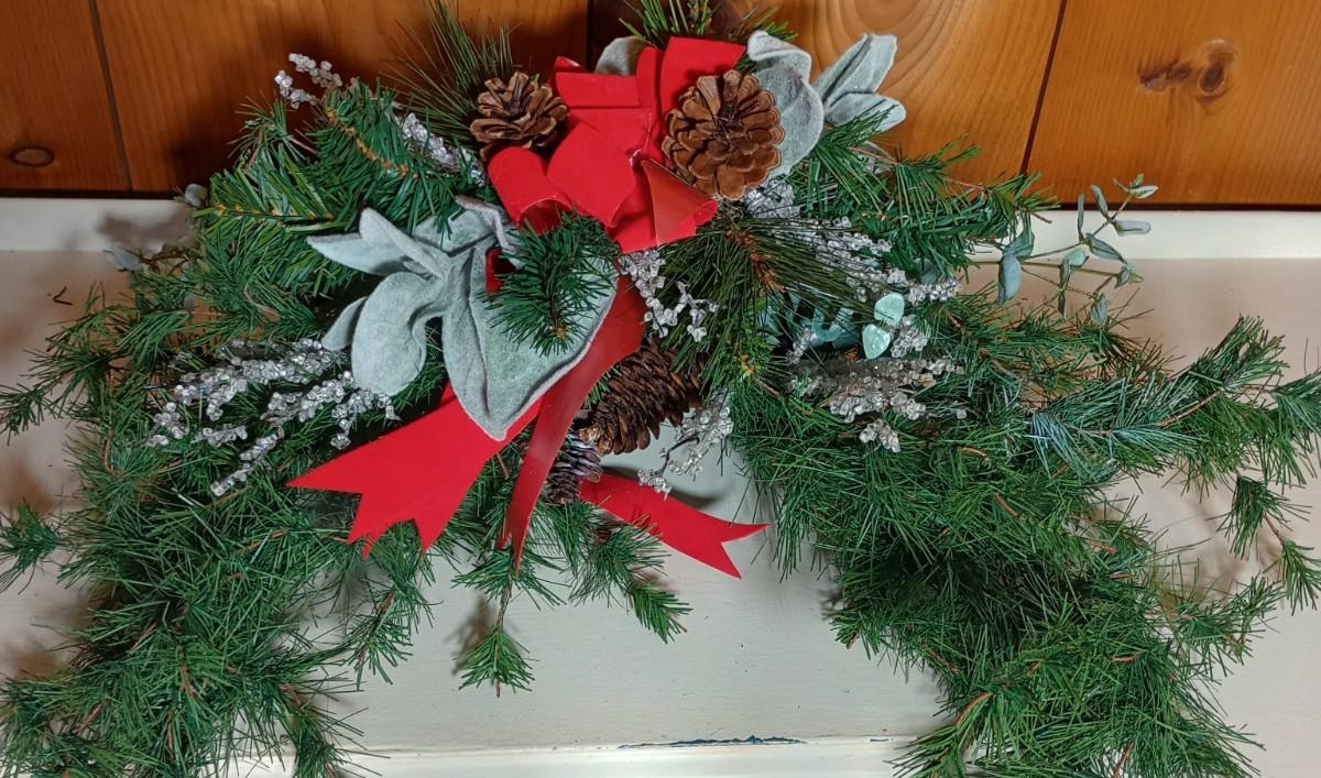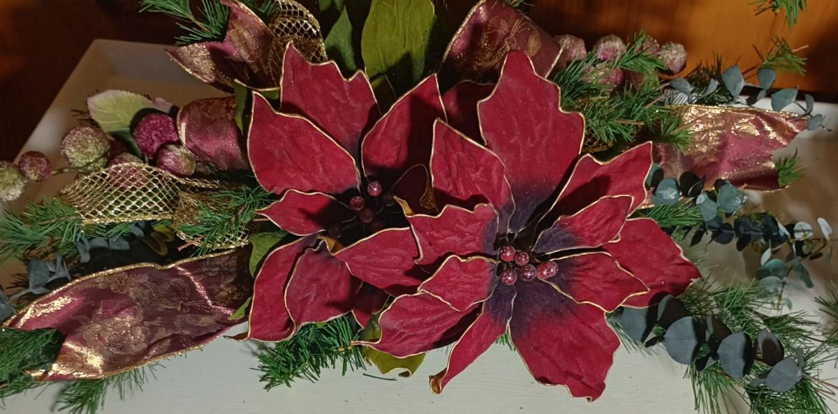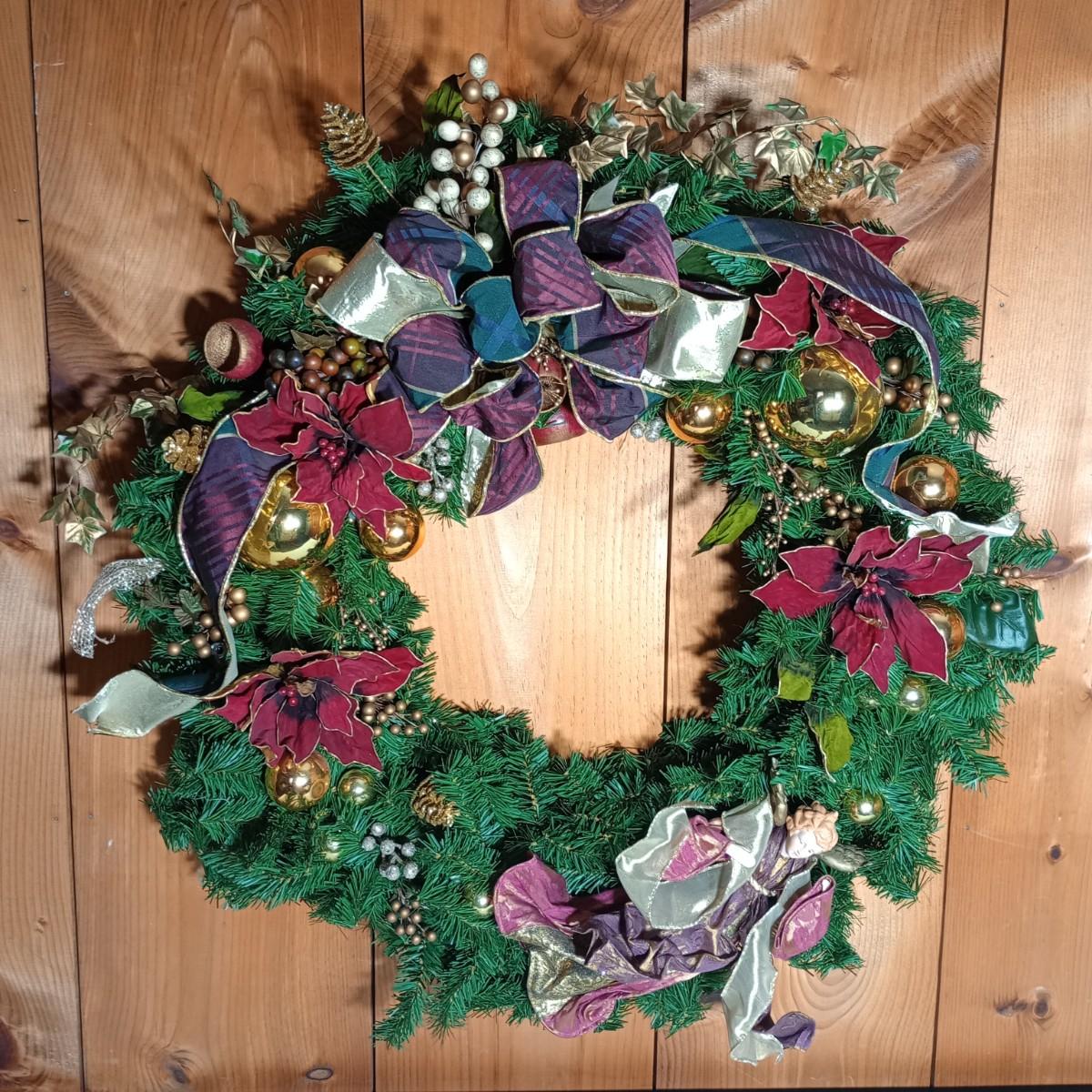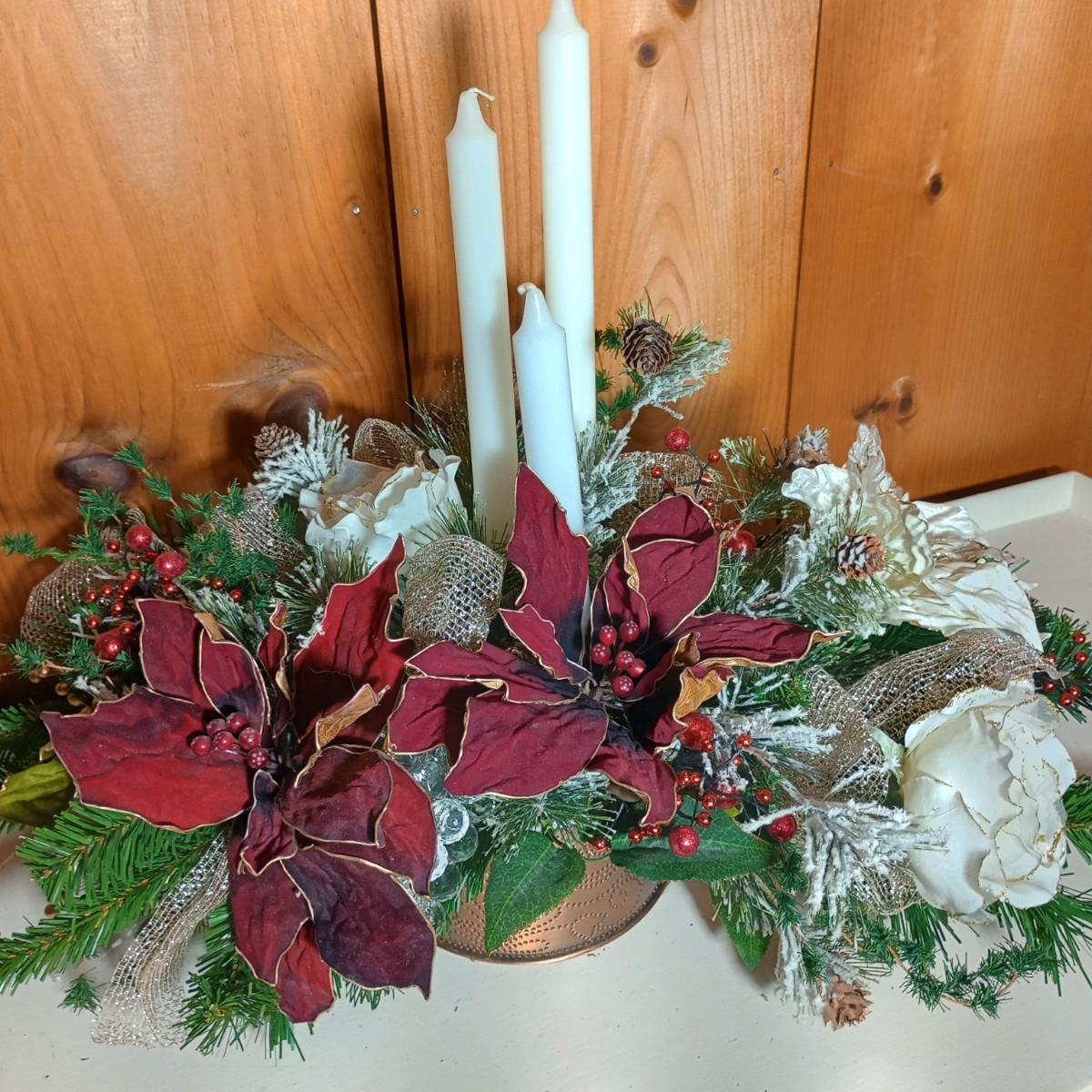 LOT 92M: Large Christmas Wreath, Two Christmas Centerpieces, and Christmas Greenery Decoration