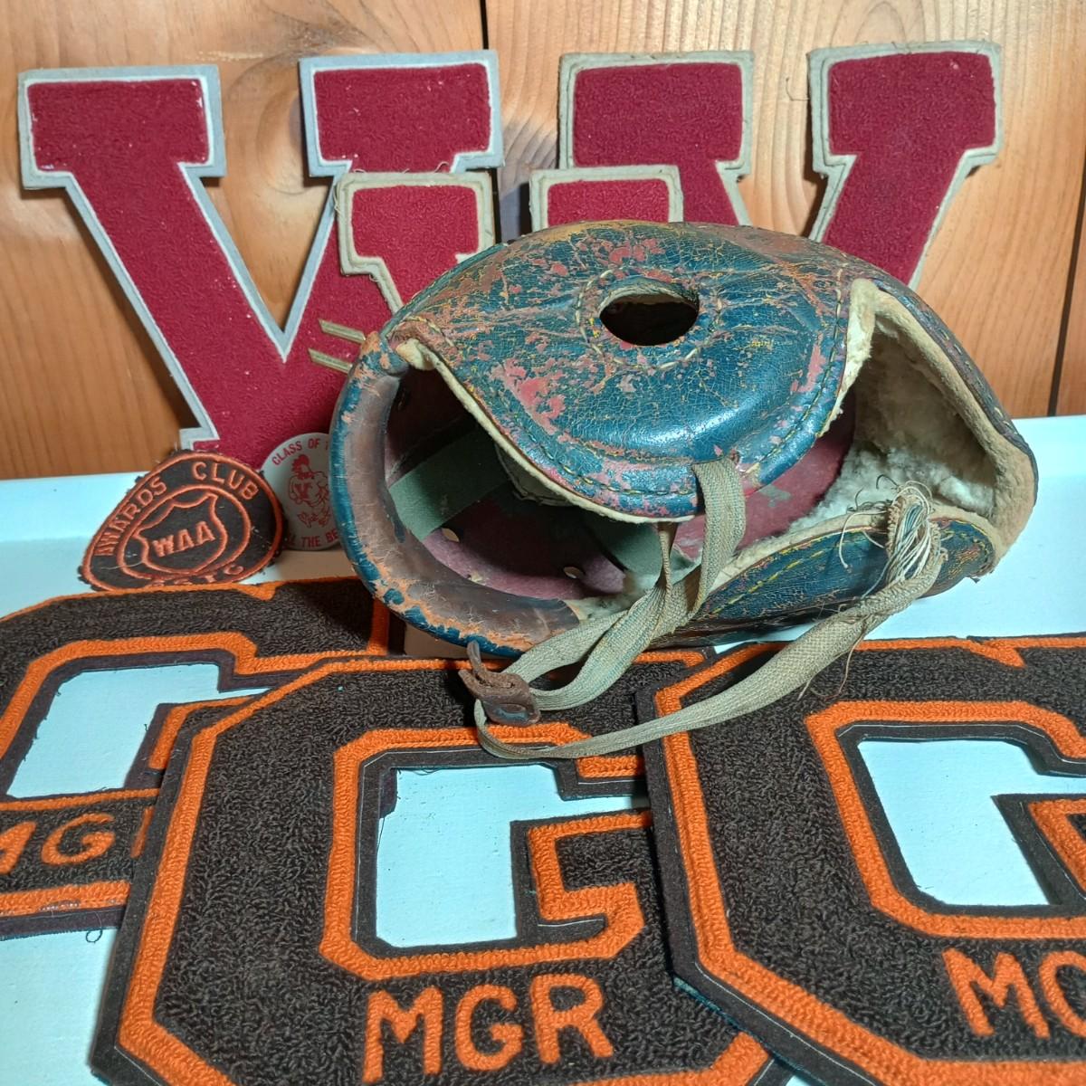 LOT 99M: Vineland High School and Glassboro State Teaching College Memorabilia, Varsity Letters and 1930s-40s Football Helmet