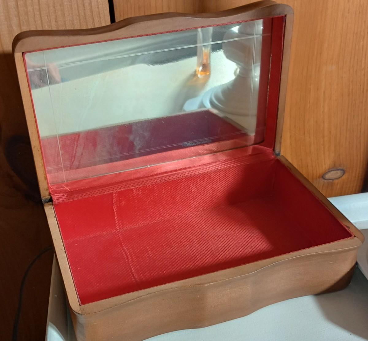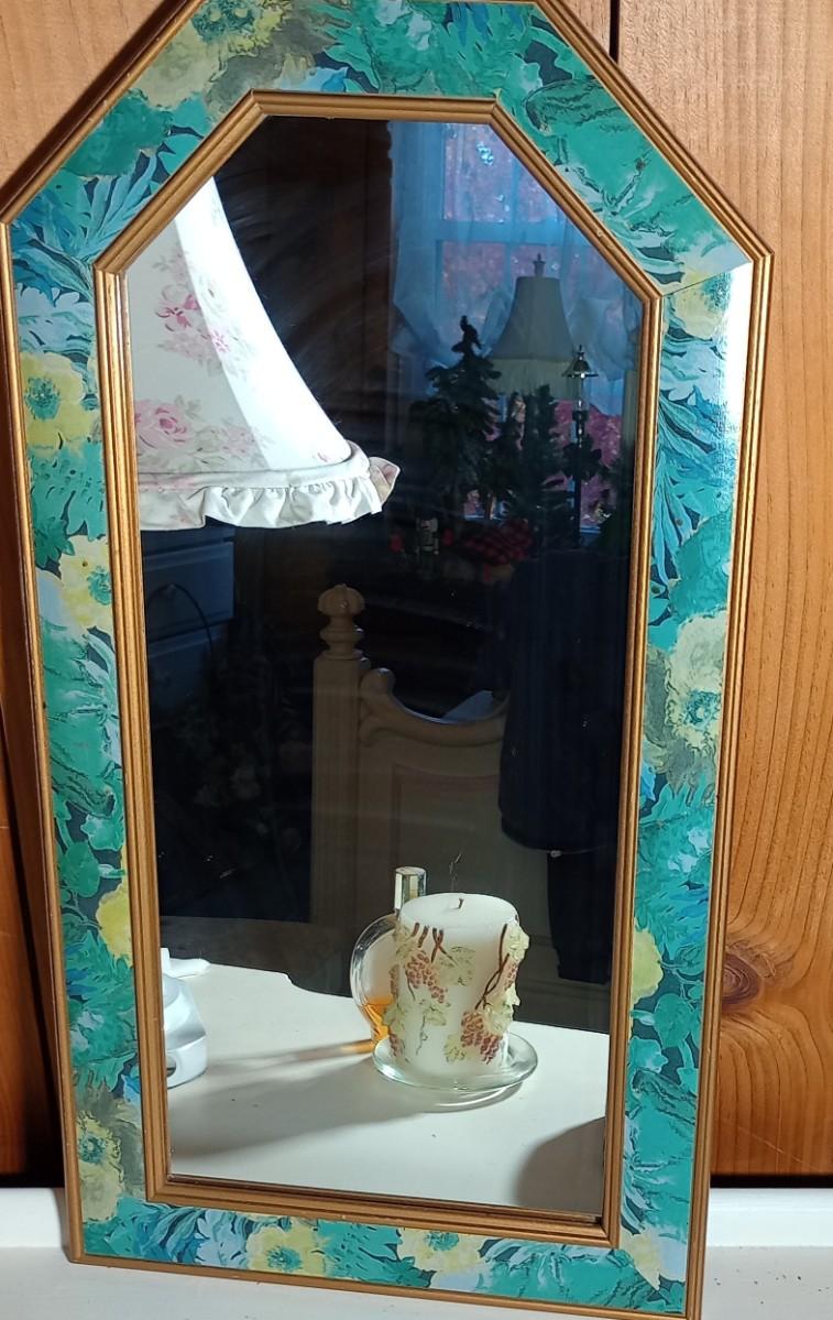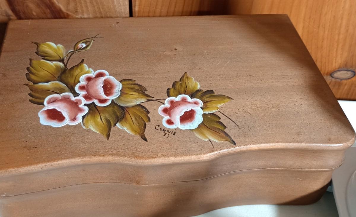 LOT 100M: Flowered Boudoir Lamp, Mirror, tapestry and handpainted Jewelry Boxes and More