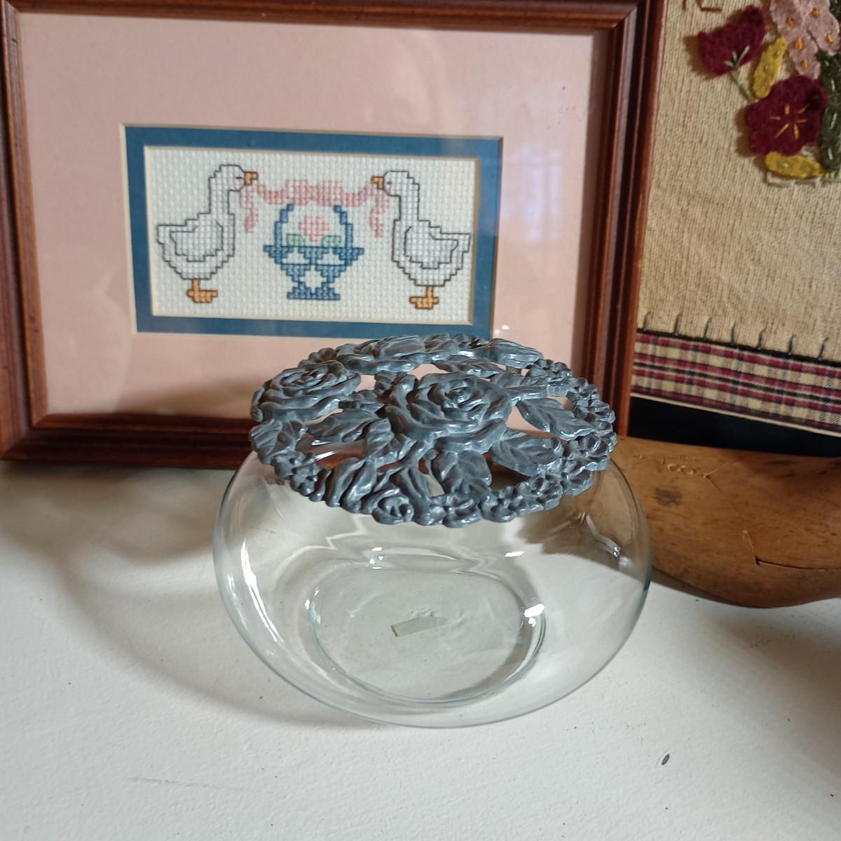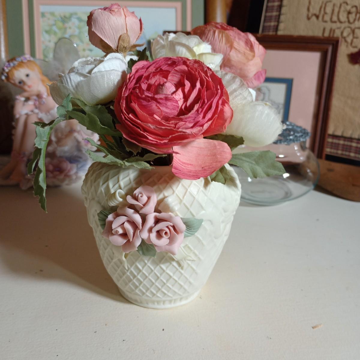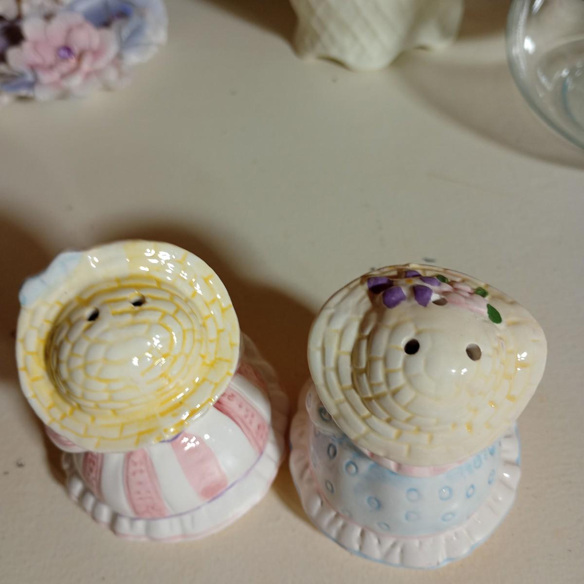 LOT 101M: Two Needlepoint Pictures, Salt and Pepper Shakers, Rose Pitcher and Vase w/Flowers and More Home Decor