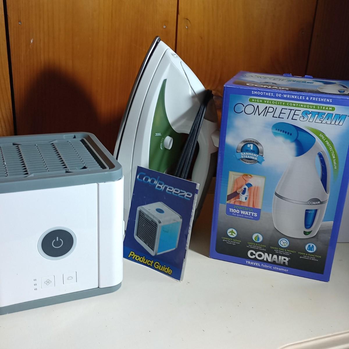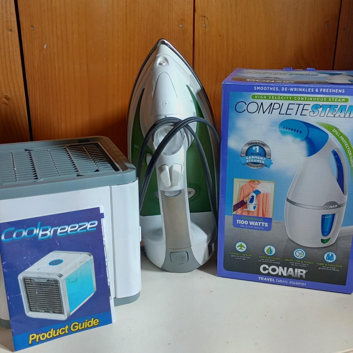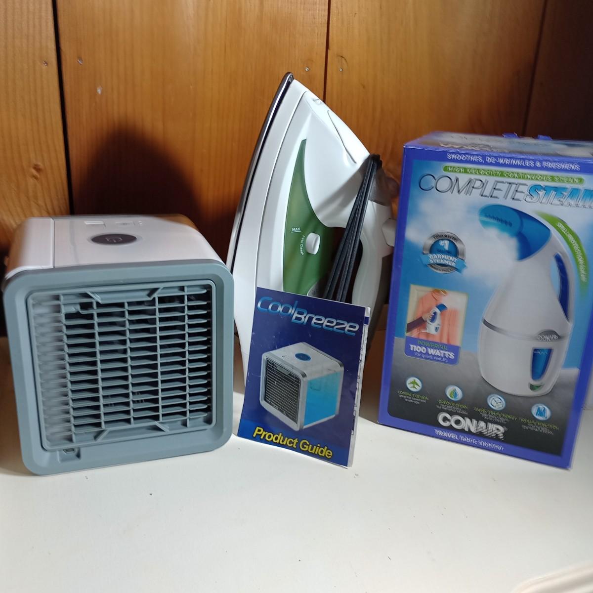 LOT 103M: Clothes Steamer, Iron and "Cool Breeze" Portable Cold Air Fan