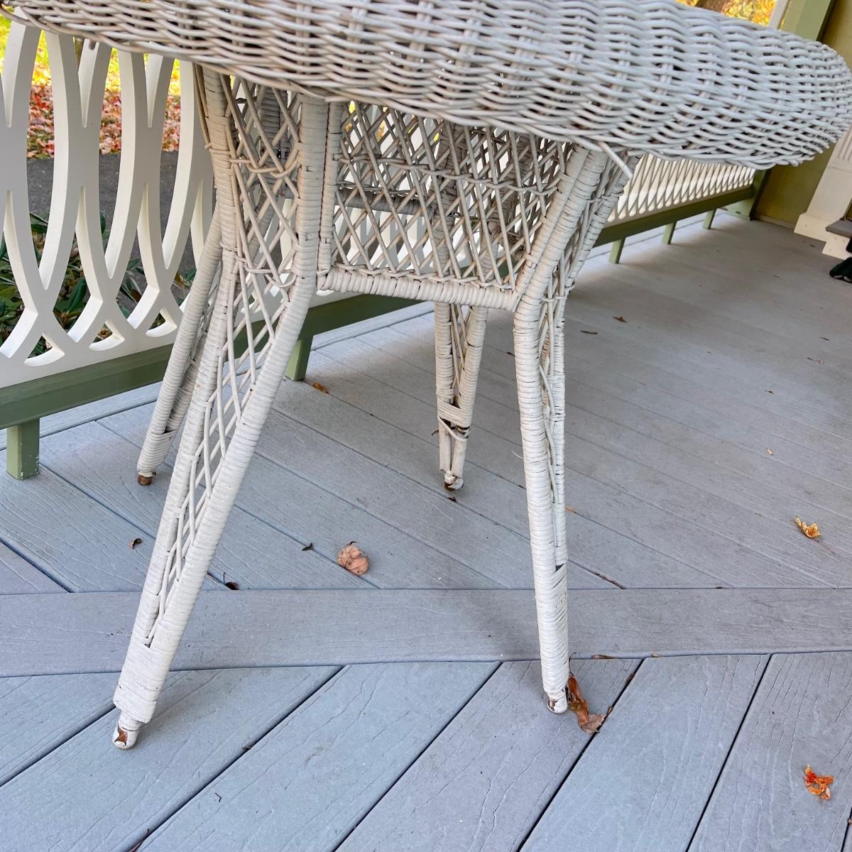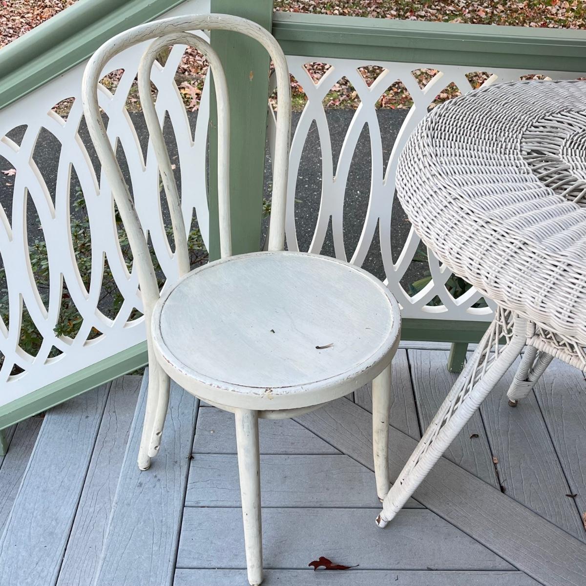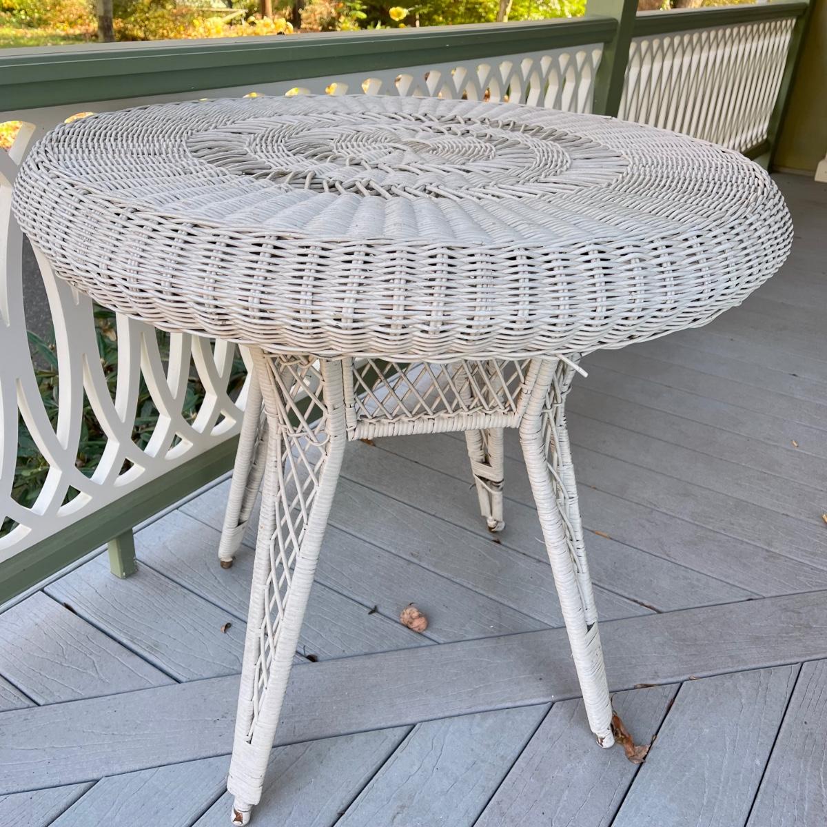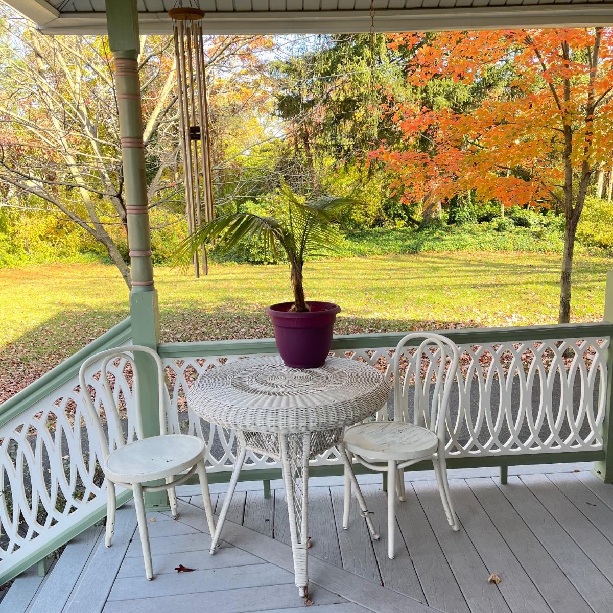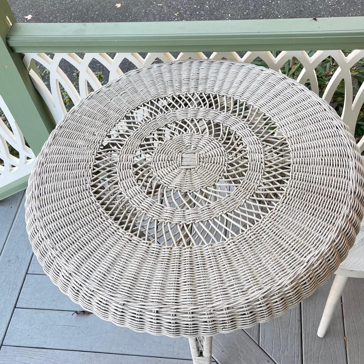 LOT 136Y: Wicker Table w/ Wooden Chairs, Live Plant, and Long Wind Chimes