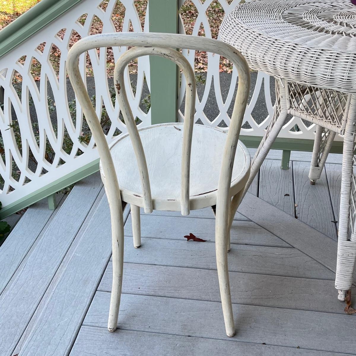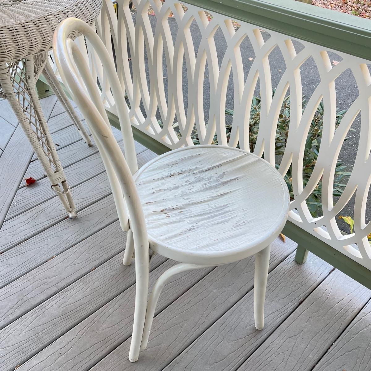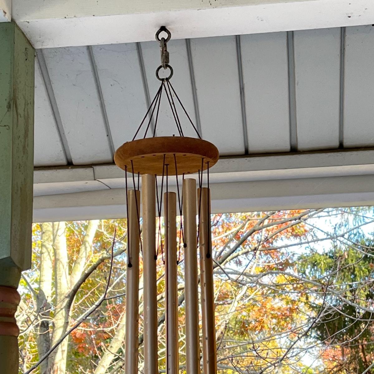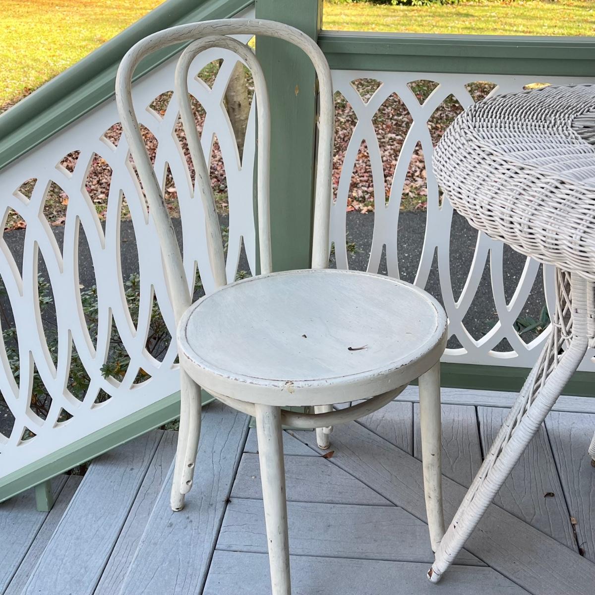 LOT 136Y: Wicker Table w/ Wooden Chairs, Live Plant, and Long Wind Chimes