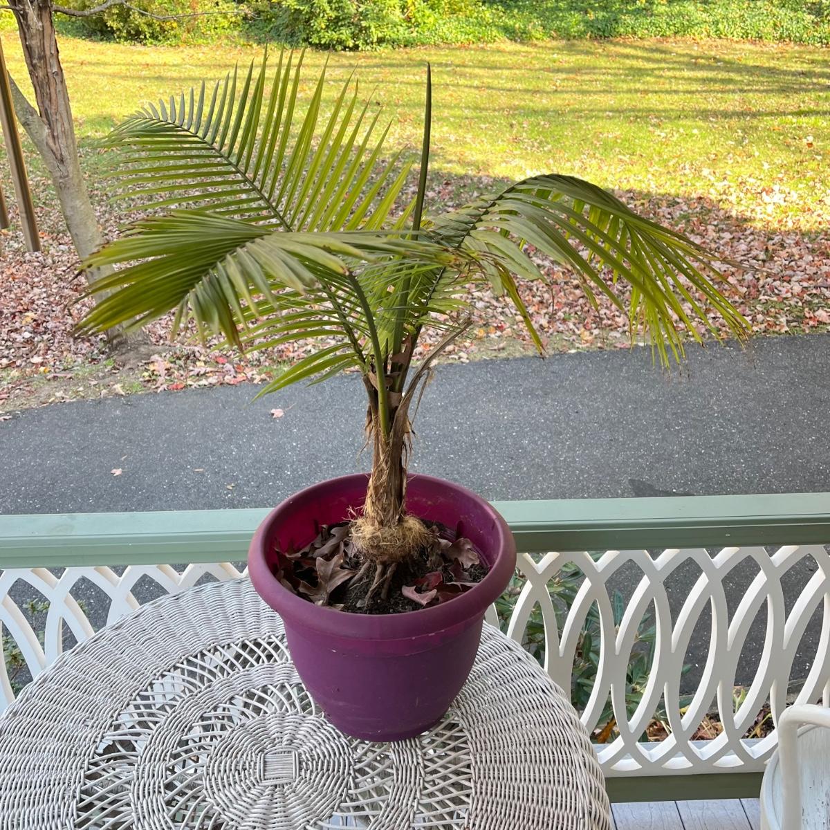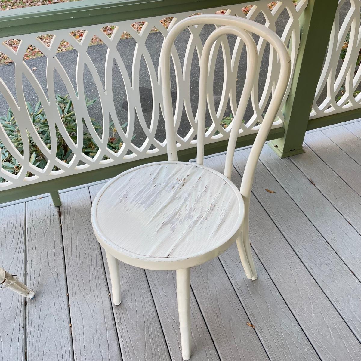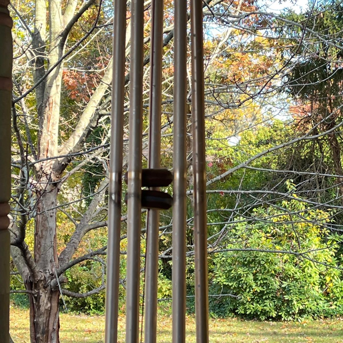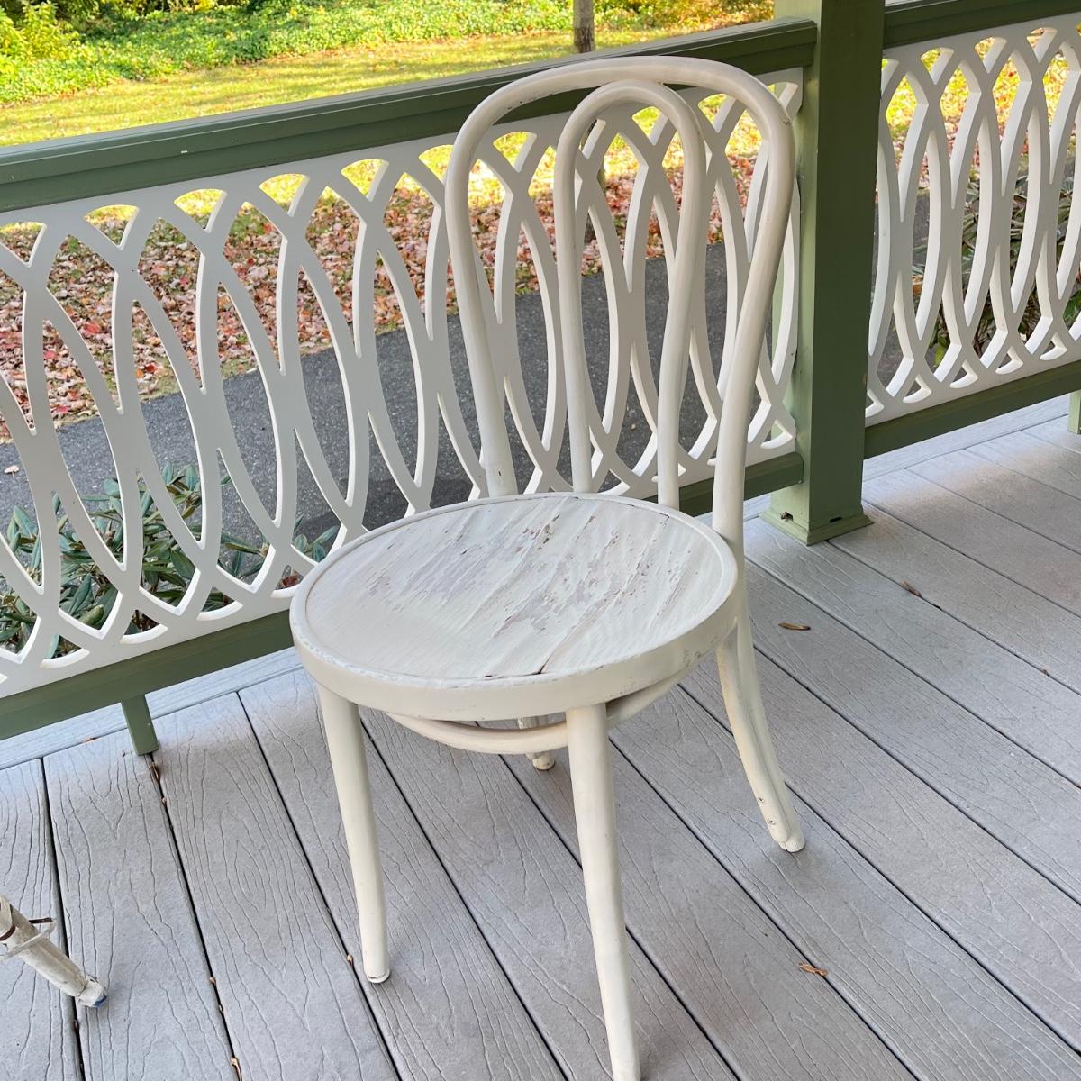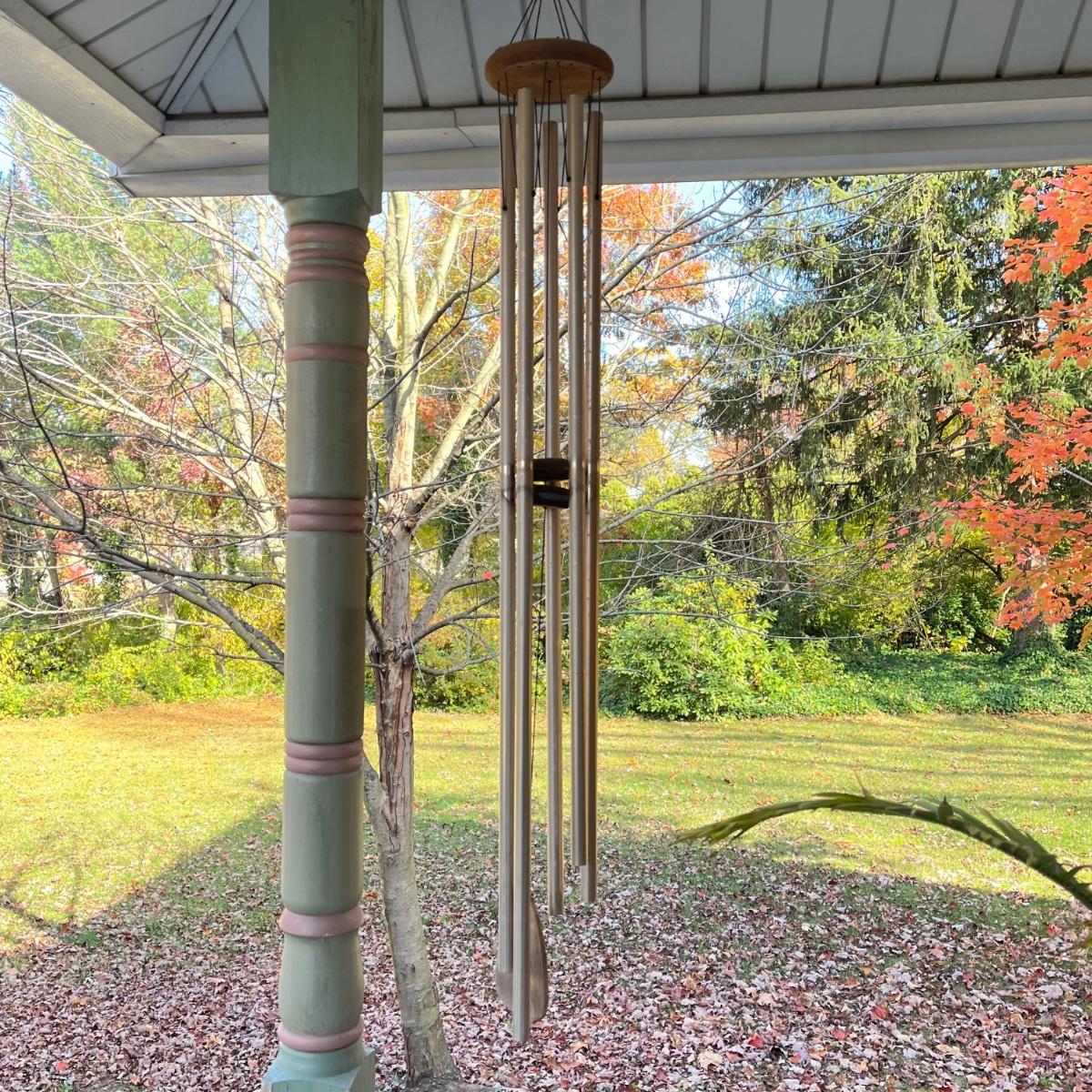 LOT 136Y: Wicker Table w/ Wooden Chairs, Live Plant, and Long Wind Chimes