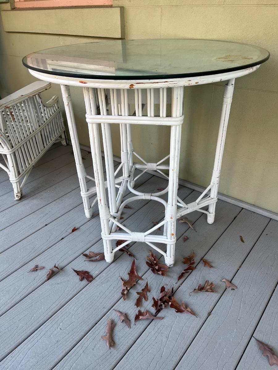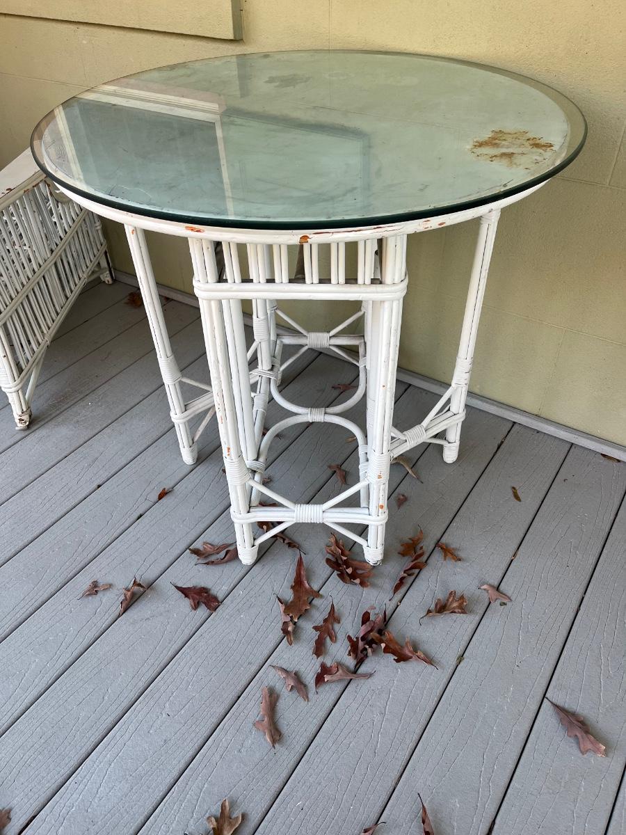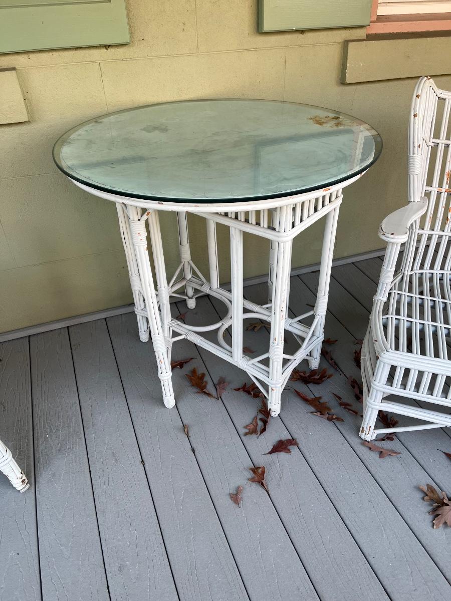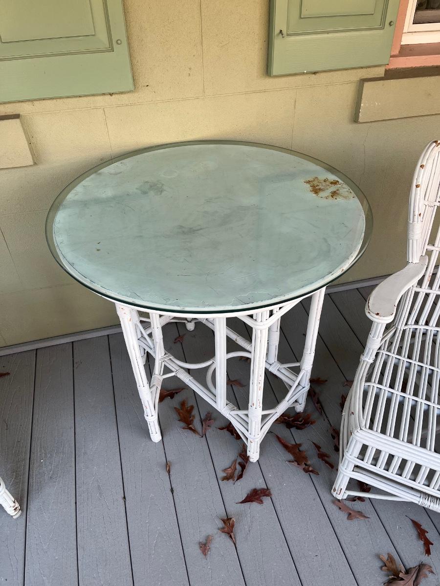 LOT 137Y: Rattan Chairs and Table with Glass Top