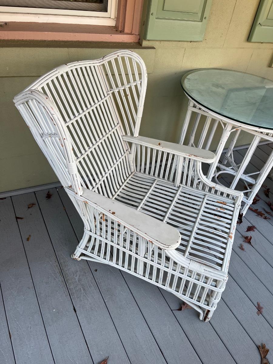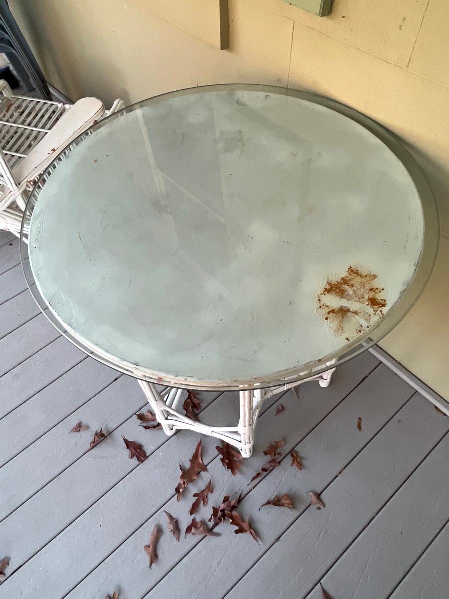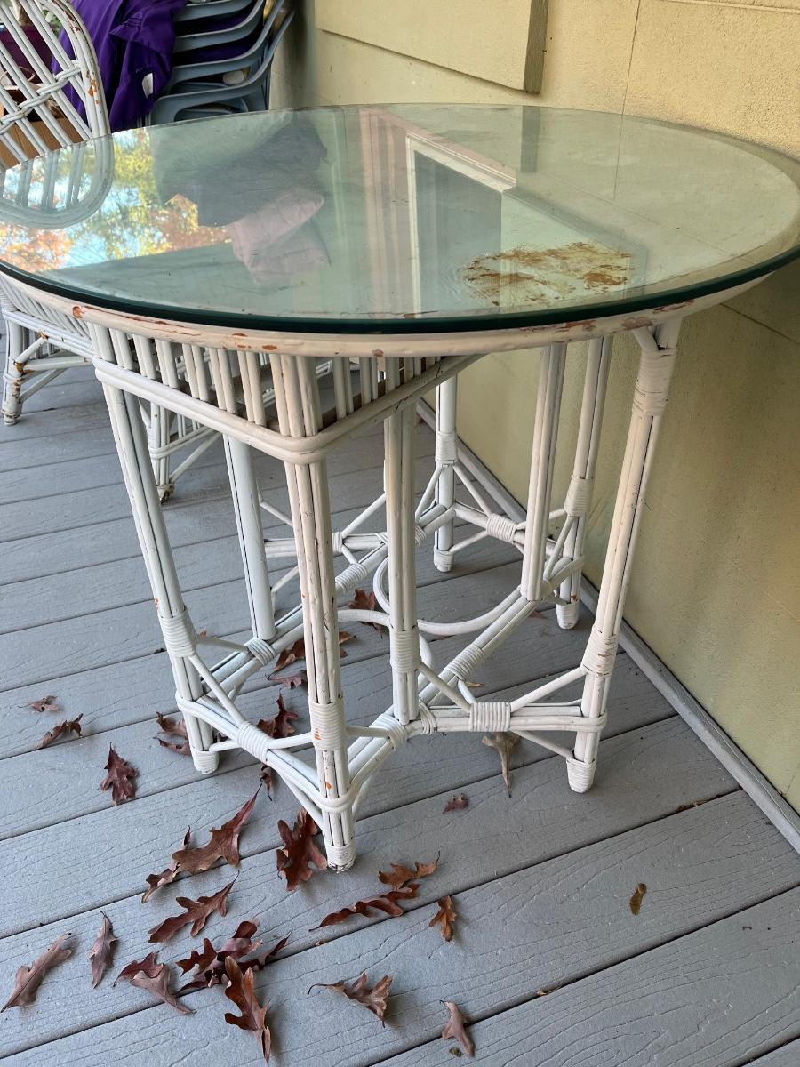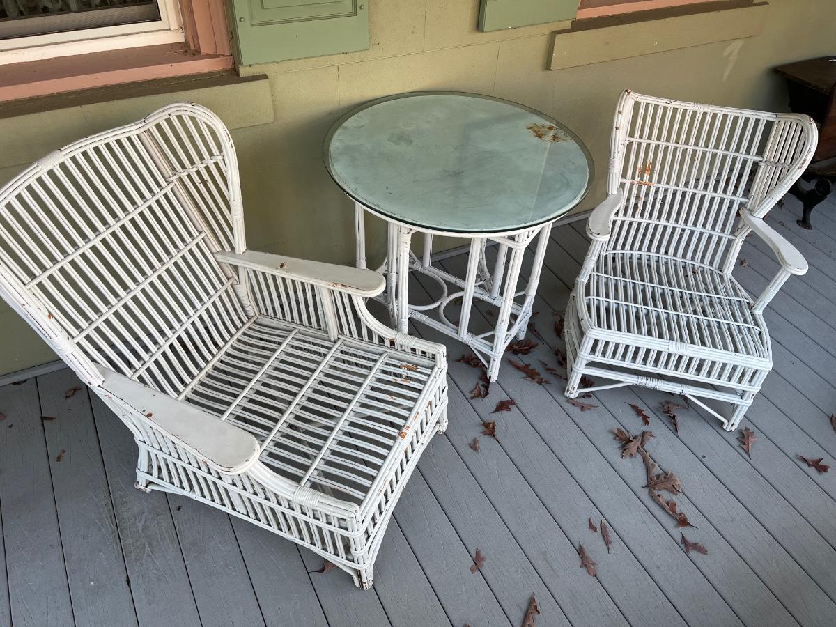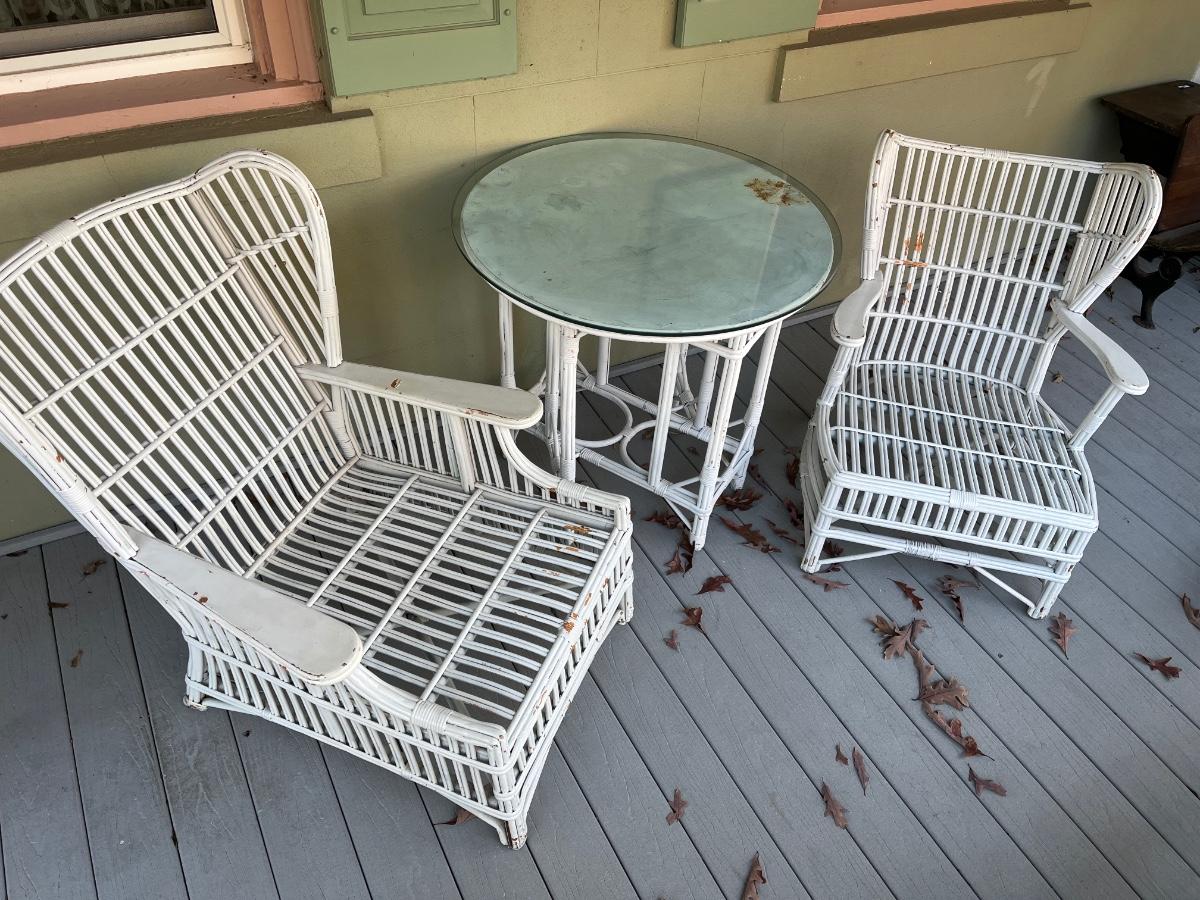 LOT 137Y: Rattan Chairs and Table with Glass Top