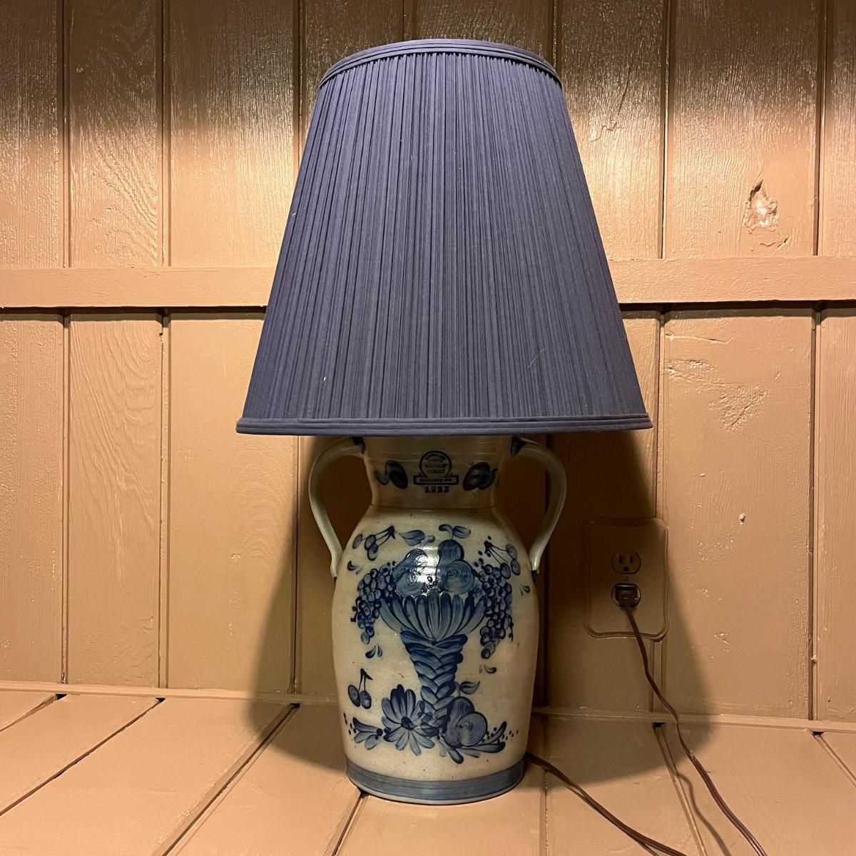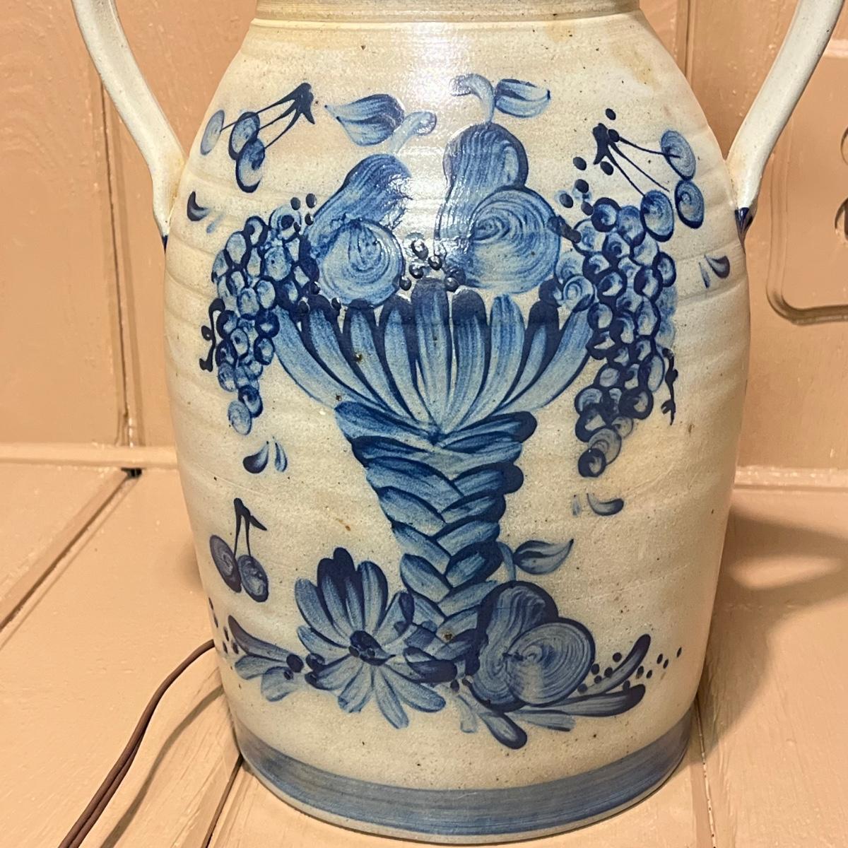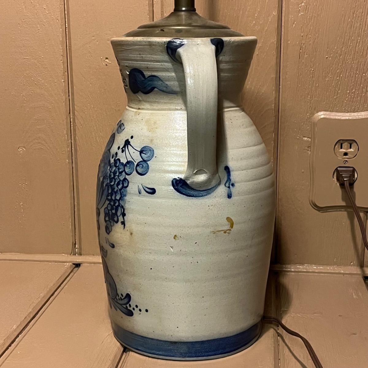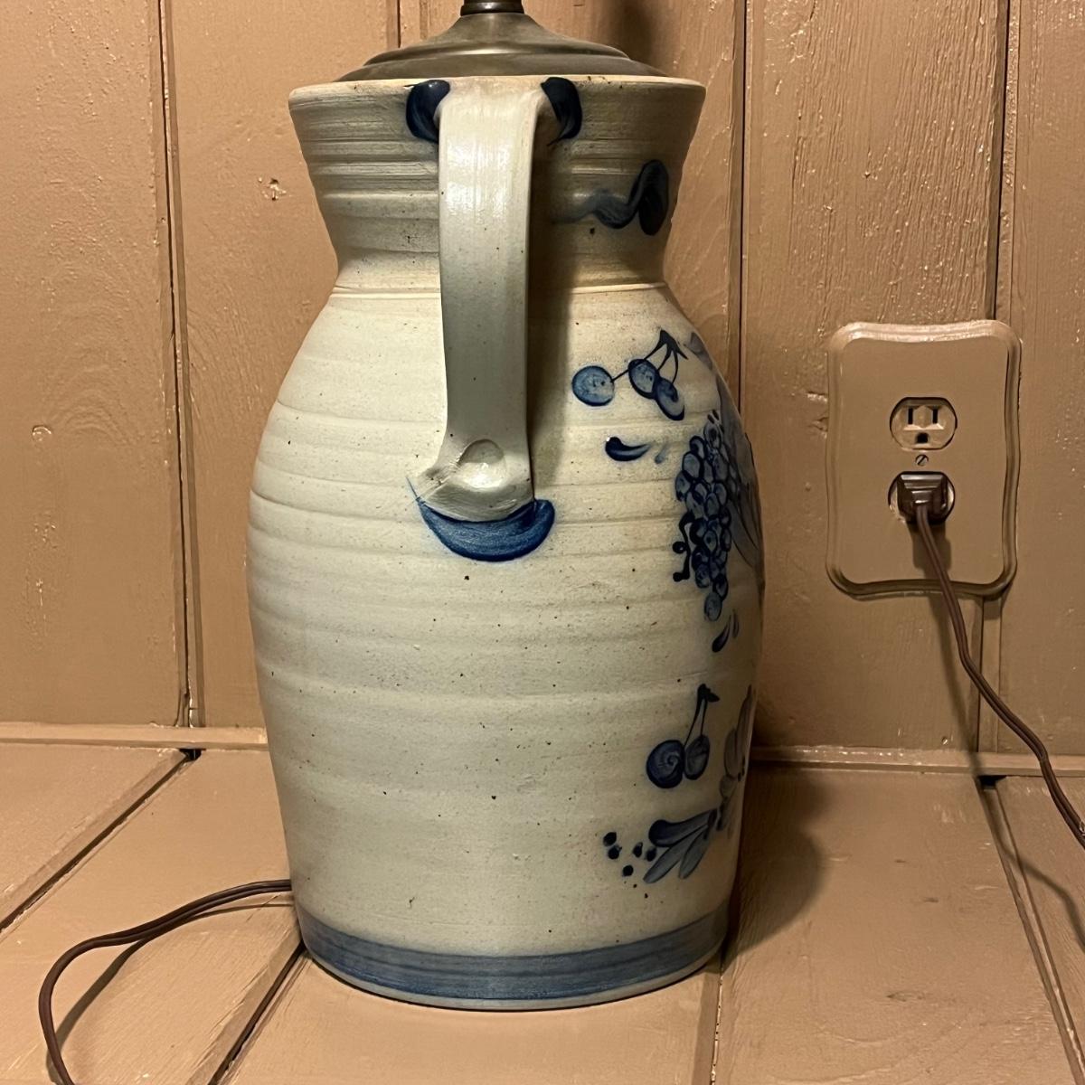 LOT 141B: Rowe Pottery Works 1992 Salt Glaze Blue Fruit and Flower Design Table Lamp