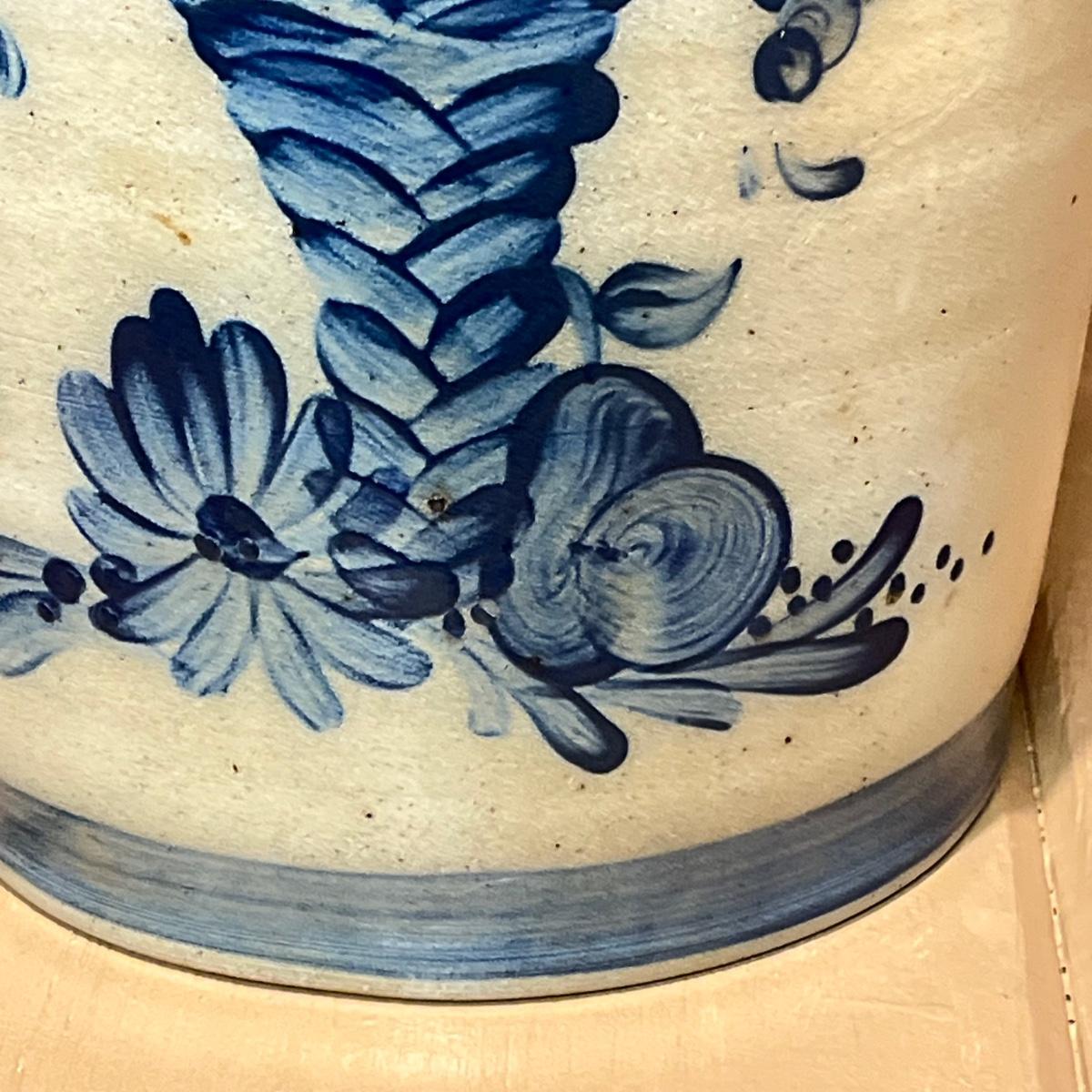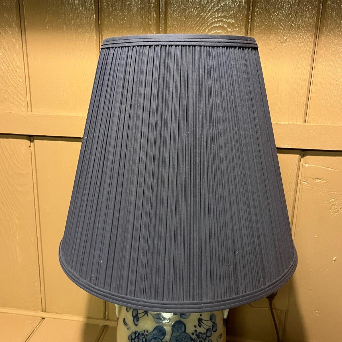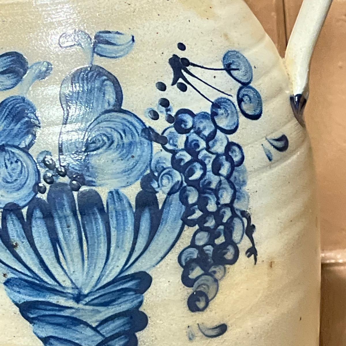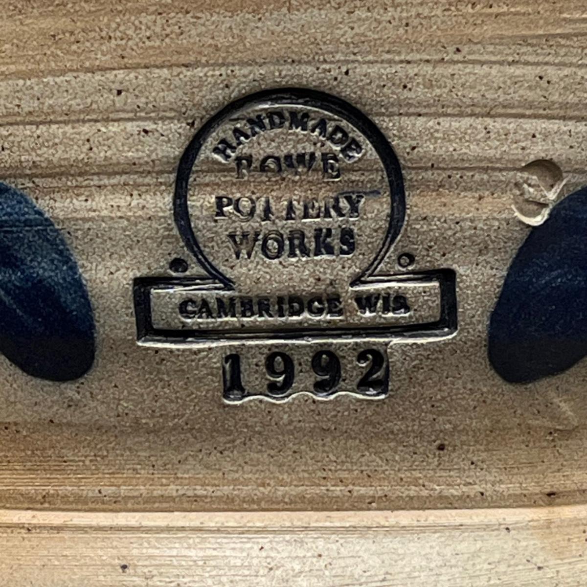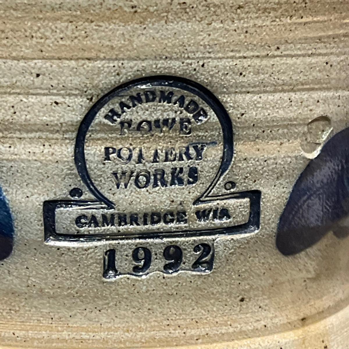 LOT 141B: Rowe Pottery Works 1992 Salt Glaze Blue Fruit and Flower Design Table Lamp