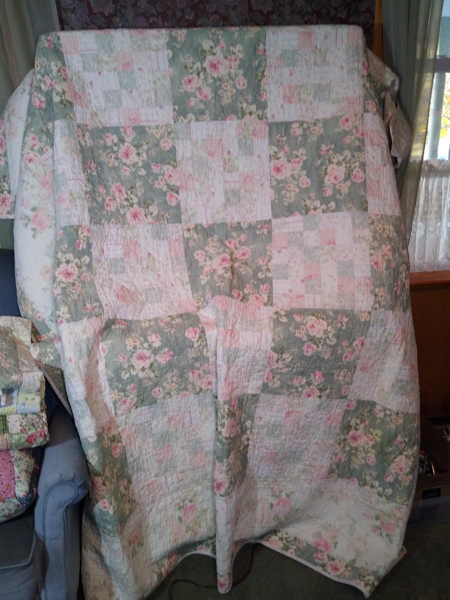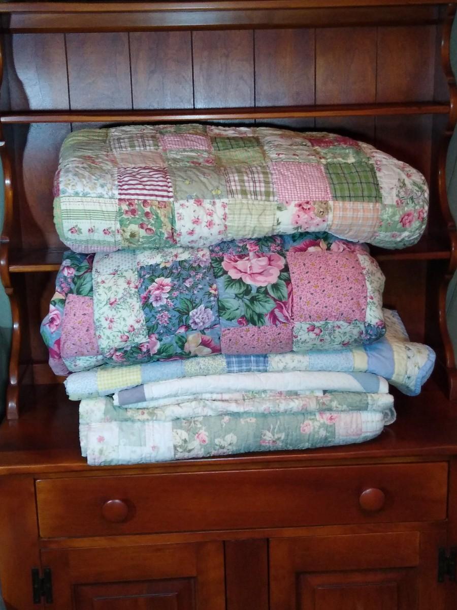 LOT 161O: Set of 5 Quilt Pattern & Vintage Patchwork Quilted Blankets with 1 Pair of Pillow Cases