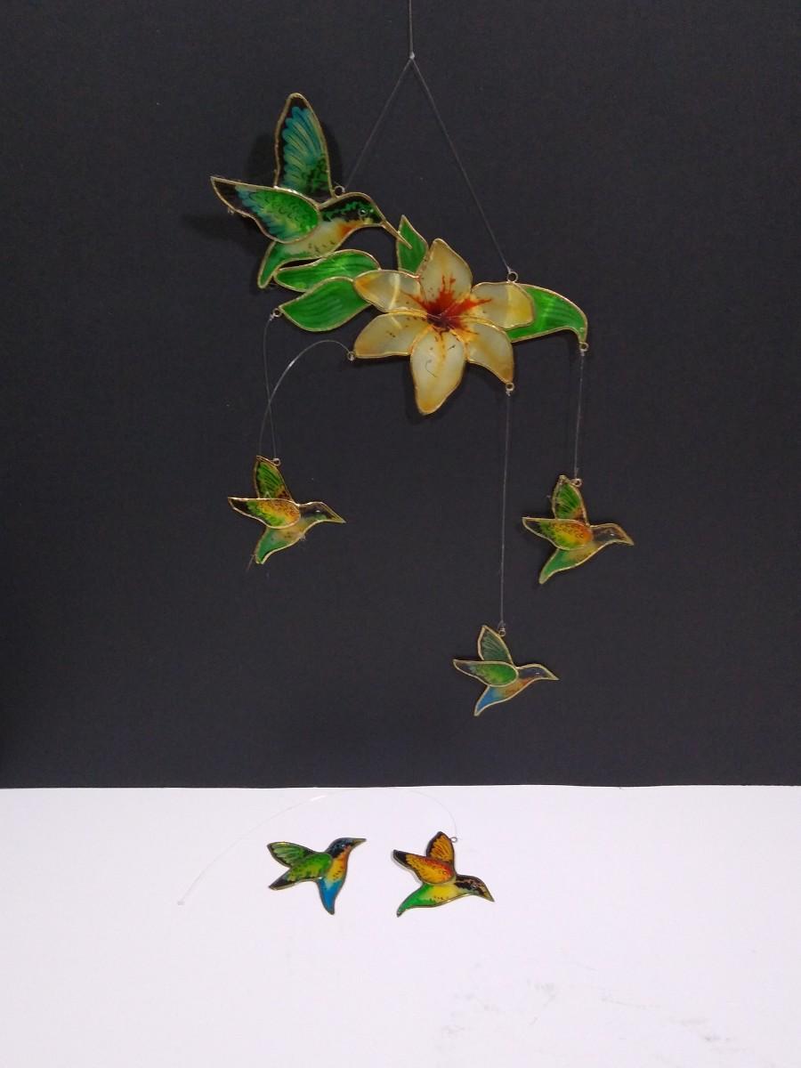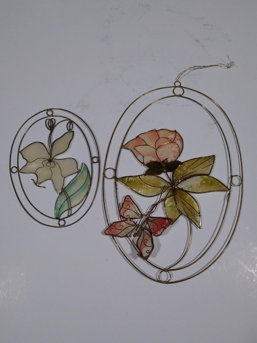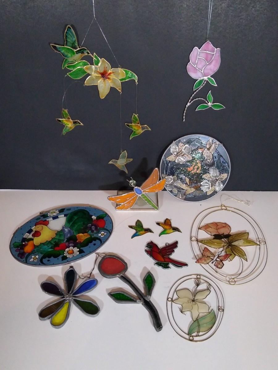 LOT 167O: Vintage Stained Glass- Capiz Shell Floral & Hummingbirds, Joan Baker Designs Rooster & More