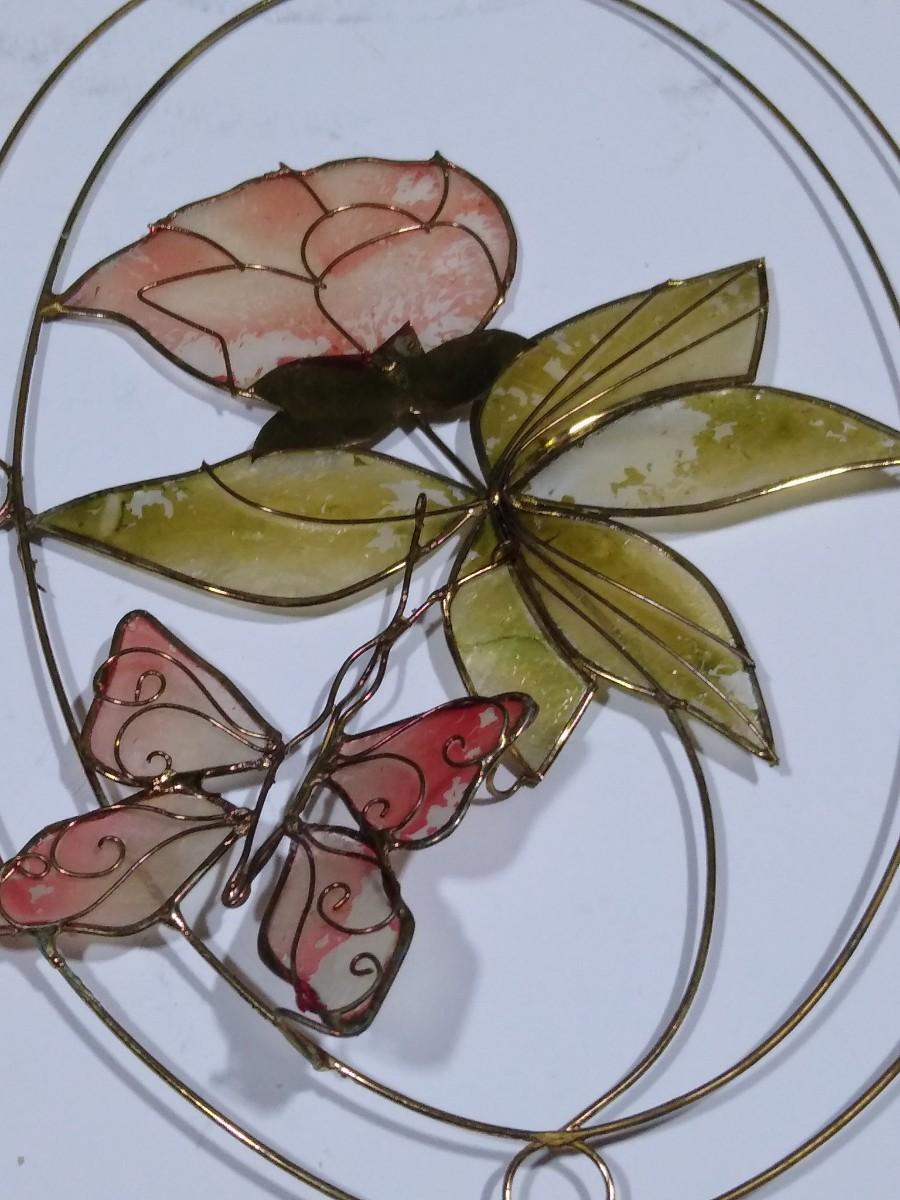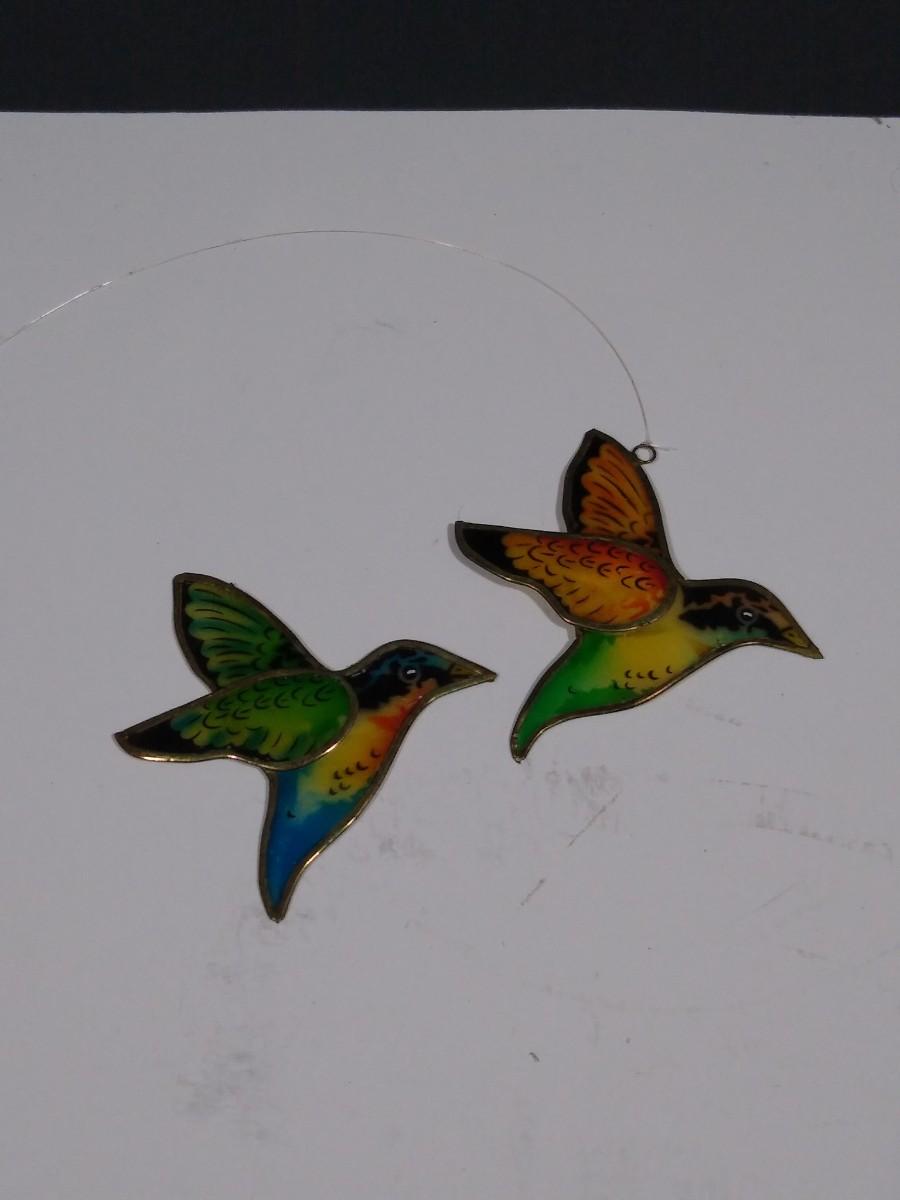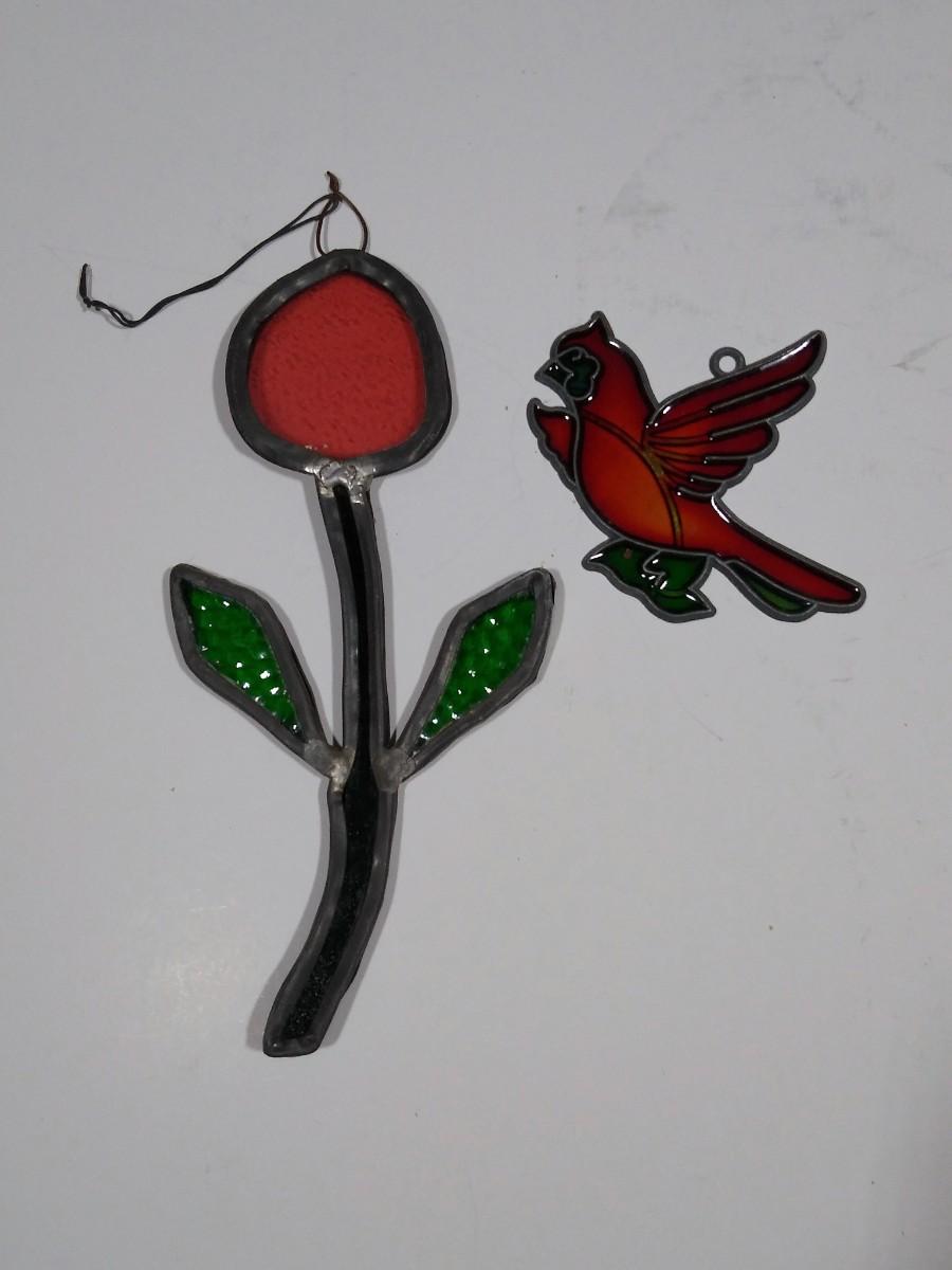 LOT 167O: Vintage Stained Glass- Capiz Shell Floral & Hummingbirds, Joan Baker Designs Rooster & More