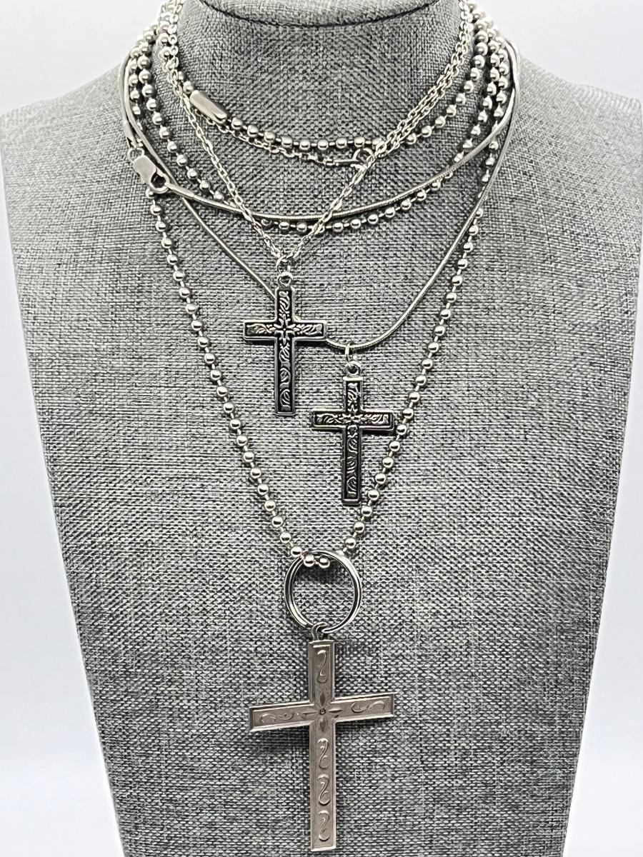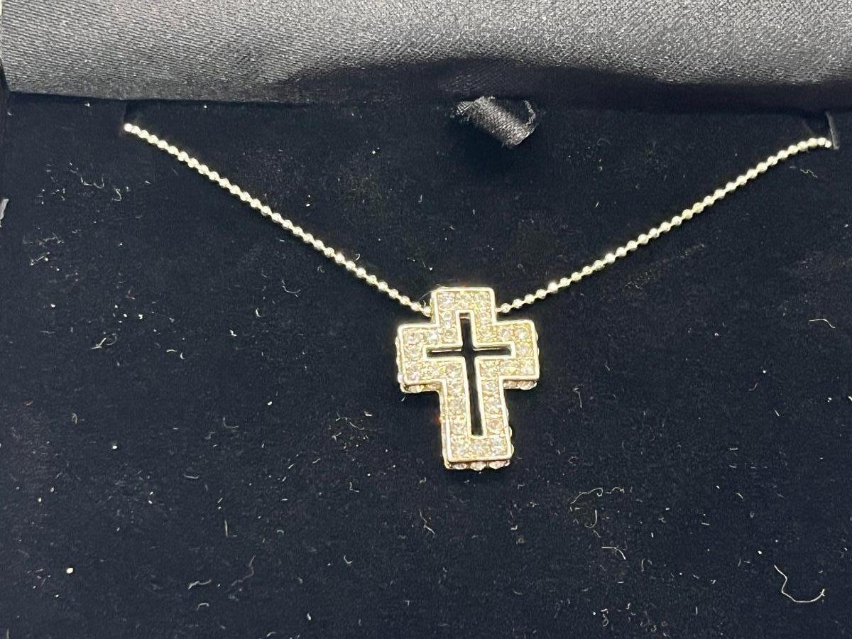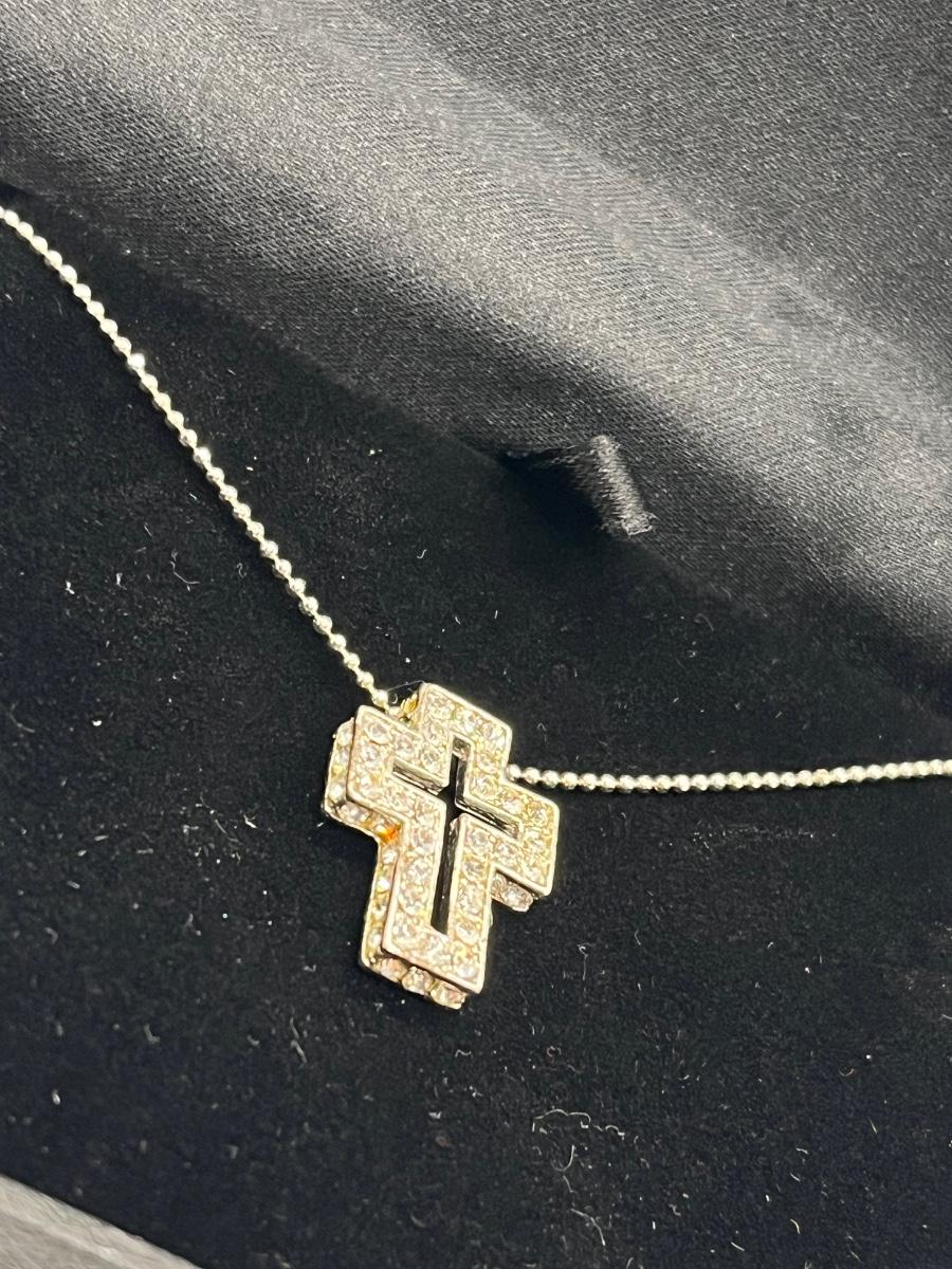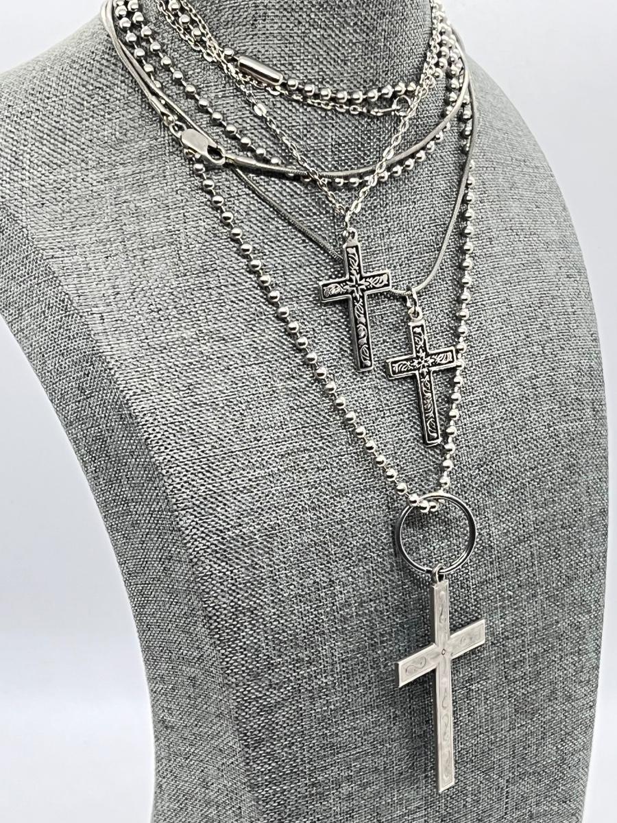 LOT 202: Cross Pendant Necklaces, Religious Medals, Pin- Sterling, pewter and more