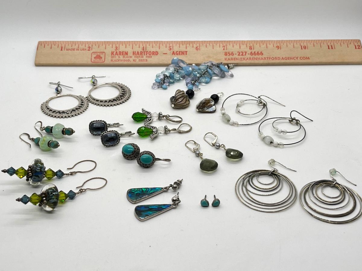 LOT 211: Vintage Sterling Silver and Turquoise Earrings and More