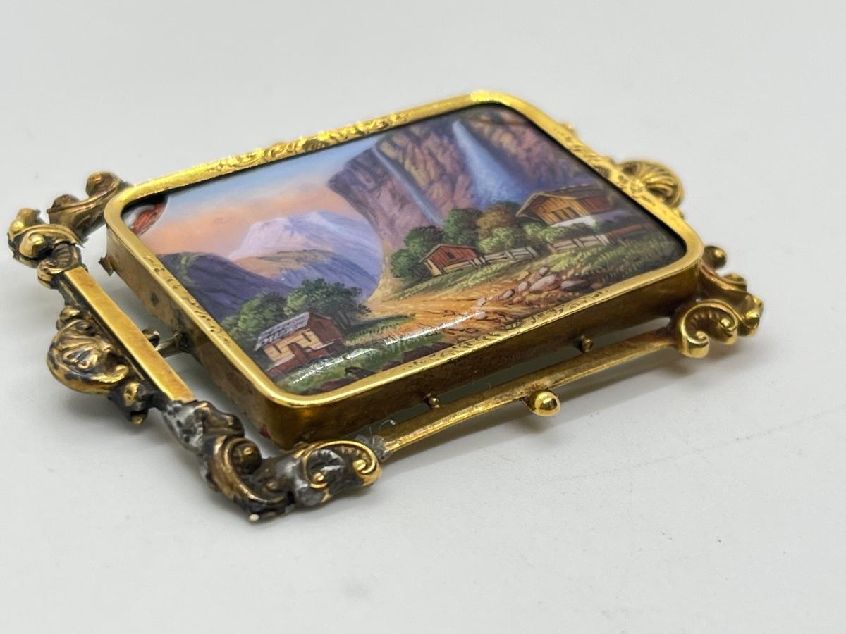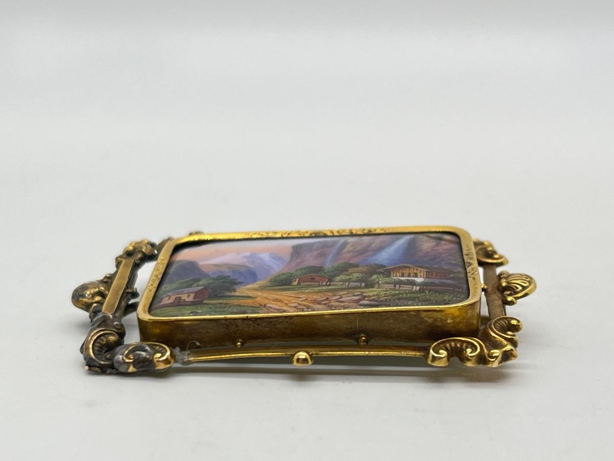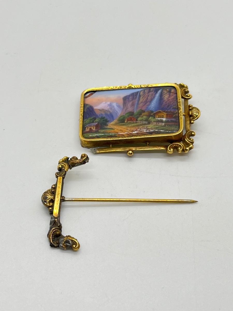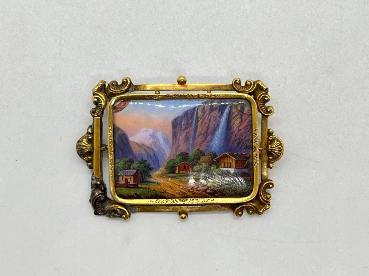 LOT 217: Antique Victorian 14K Gold and Enamel Picture Brooch