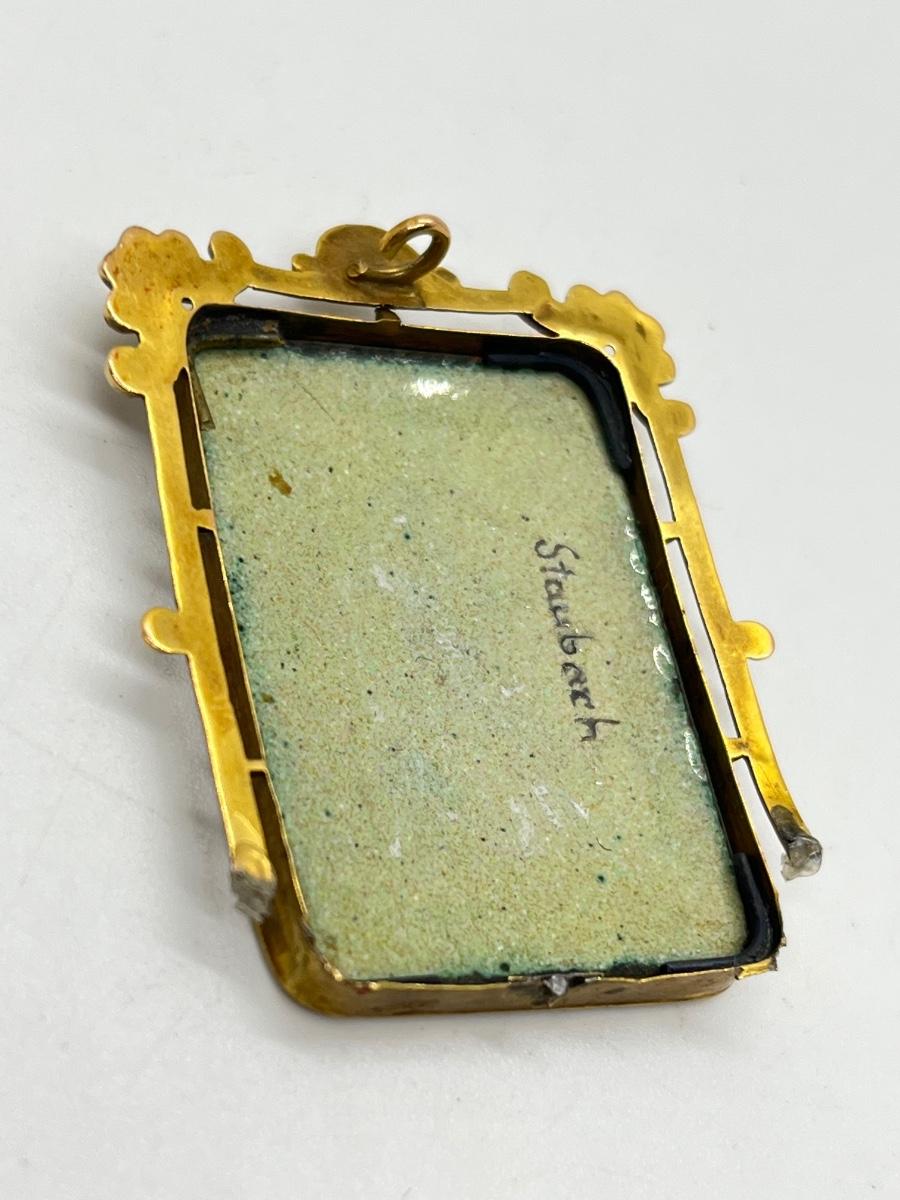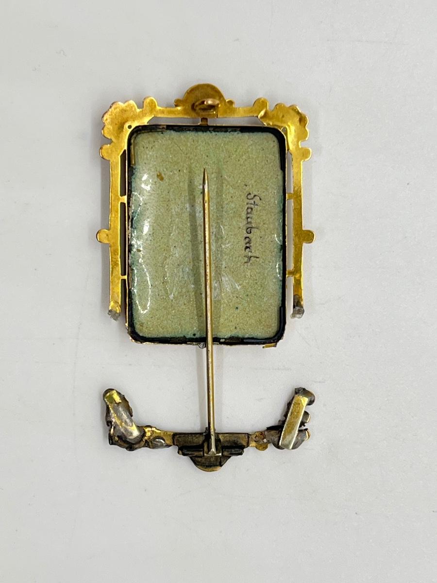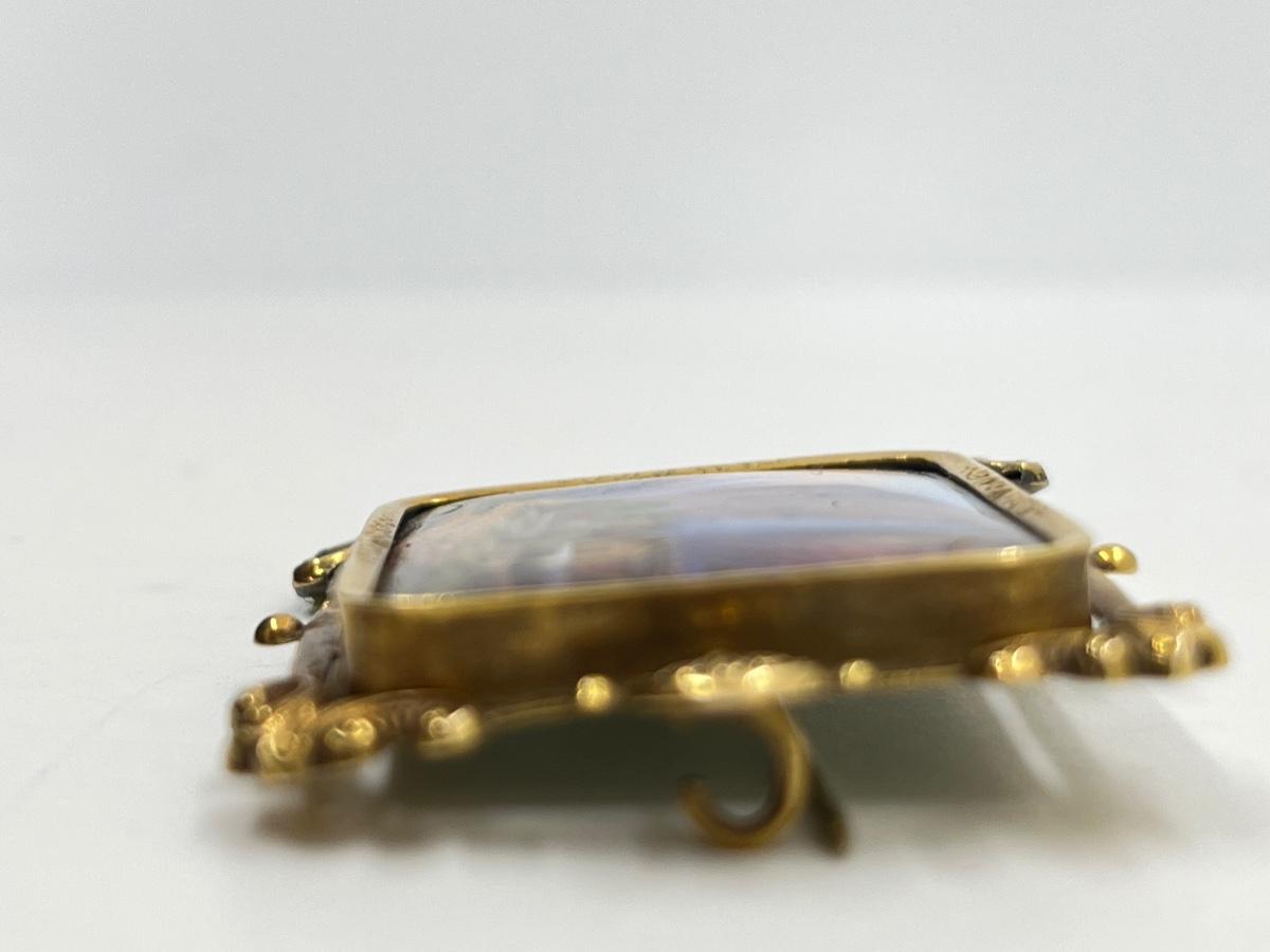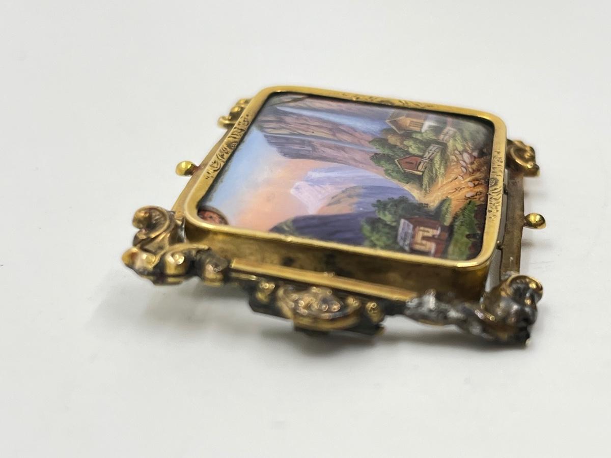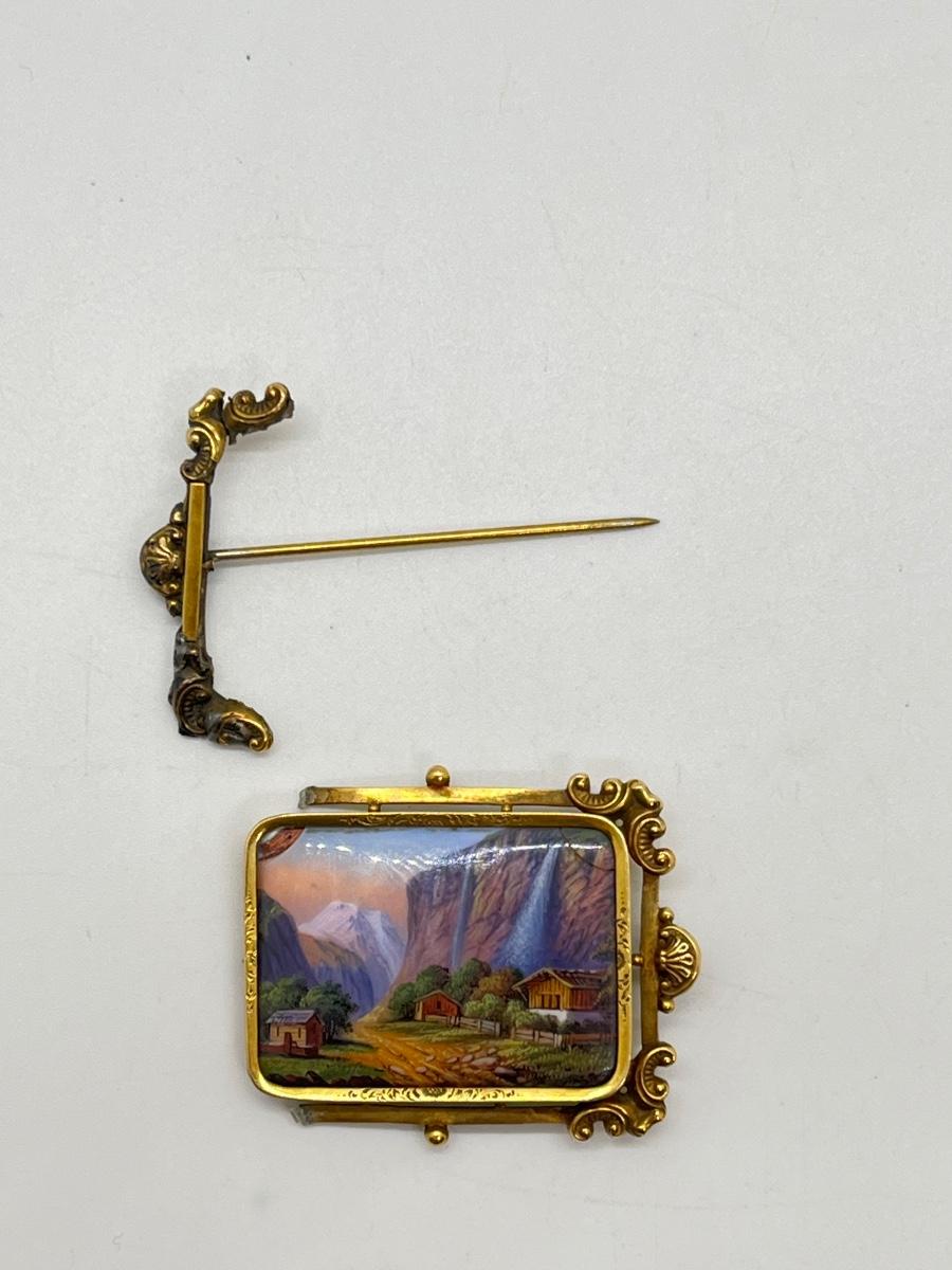 LOT 217: Antique Victorian 14K Gold and Enamel Picture Brooch