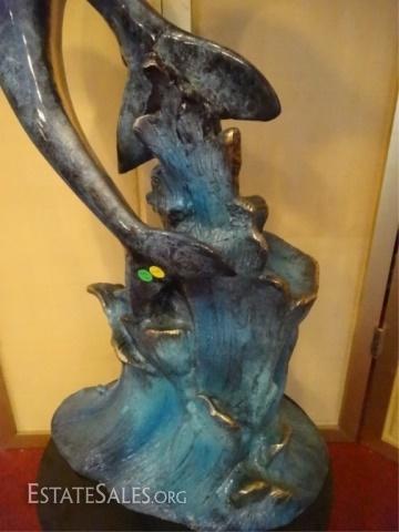 LOT 95A: HUGE PATINATED BRONZE DOLPHIN SCULPTURE