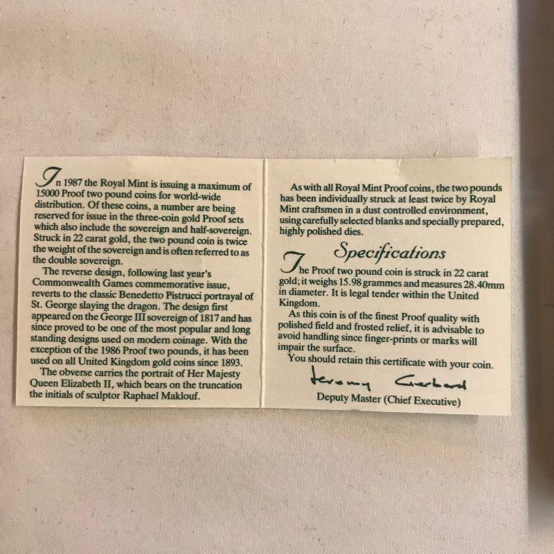 British Royal Mint 1987 Half Ounce Gold Coin. Proof