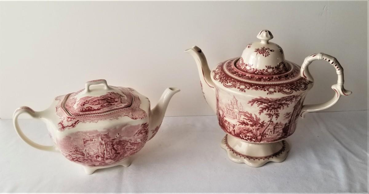 Lot #96 2 Red/Mulberry Transfer Ware Teapots