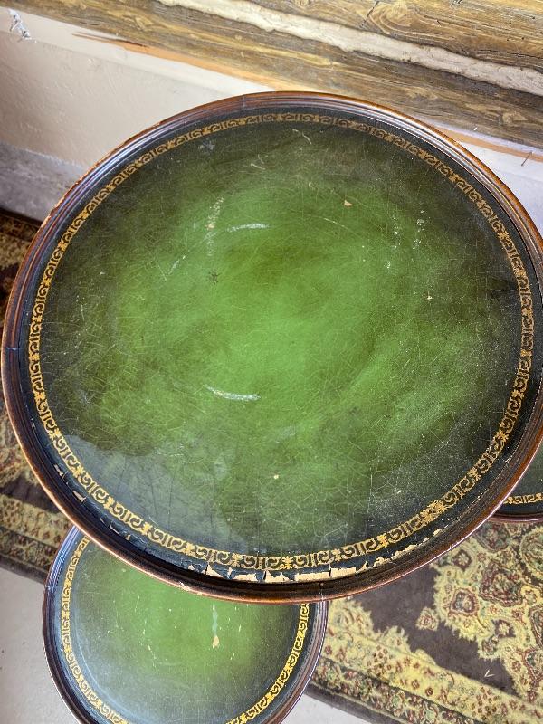 Lot# 96 2 Tiered Plant Display Piece Leather Topped Round Platforms