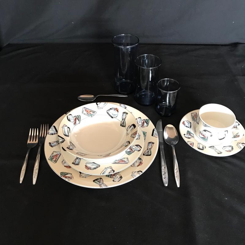 Lot 96 - “50’s Kitchen” Dining Ware, Silverware, and Glassware