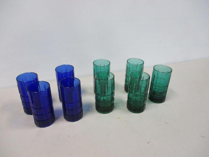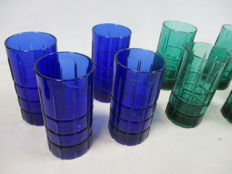 Lot 96 - Anchor Hocking Cobalt Blue & Green Tumbler Glasses