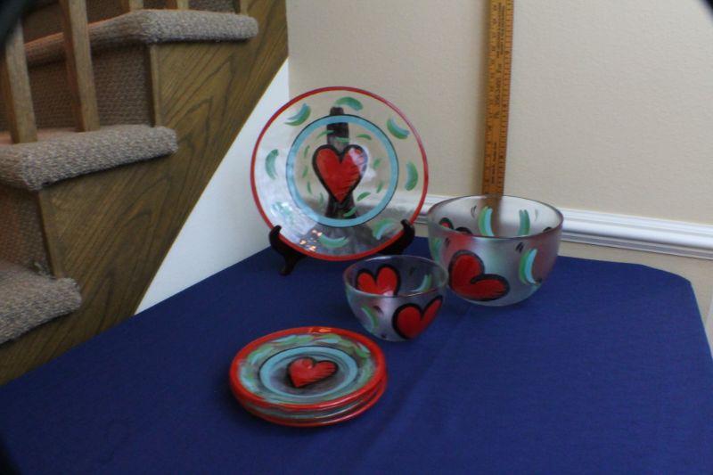 LOT #96: Set of Heat Themed Bowls, Plates and Large Serving Plate