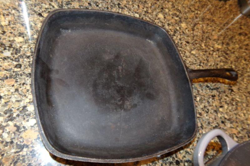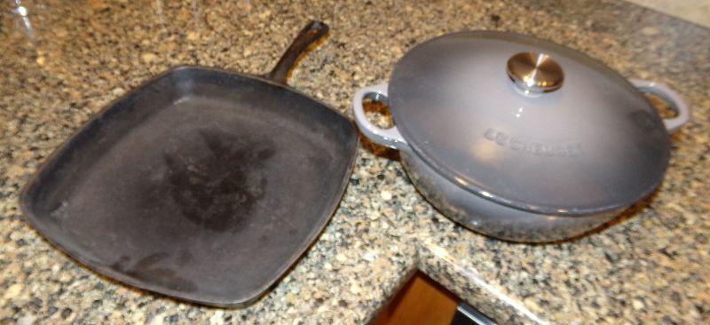 LOT 96 LE CREUSET & CAST IRON SKILLET