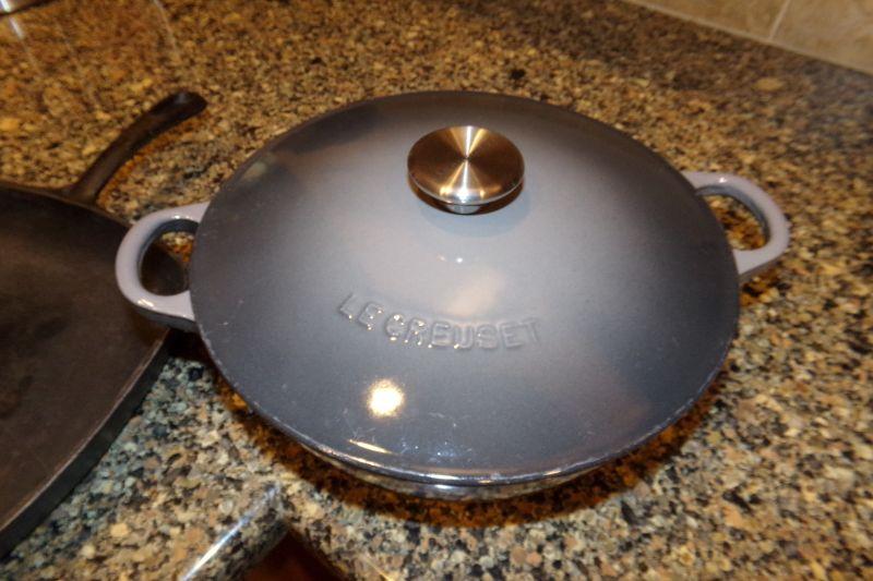LOT 96  LE CREUSET & CAST IRON SKILLET