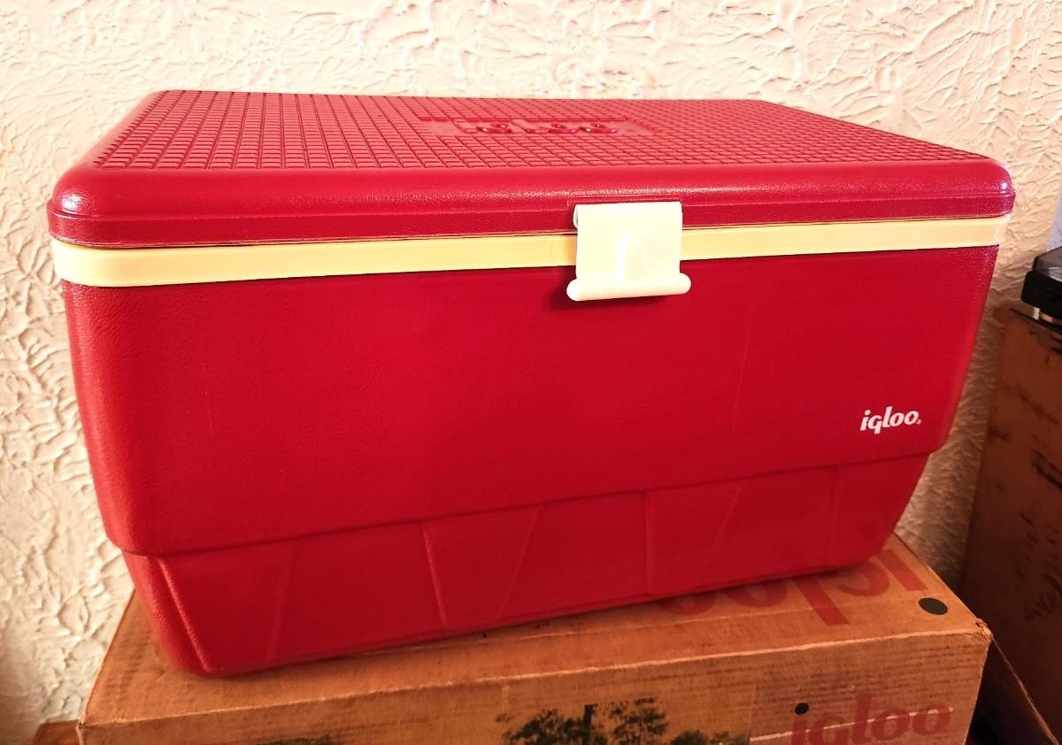 Attic Fresh - has original box - if used at all only lightly used. 1970's 48 Quart IGLOO cooler.