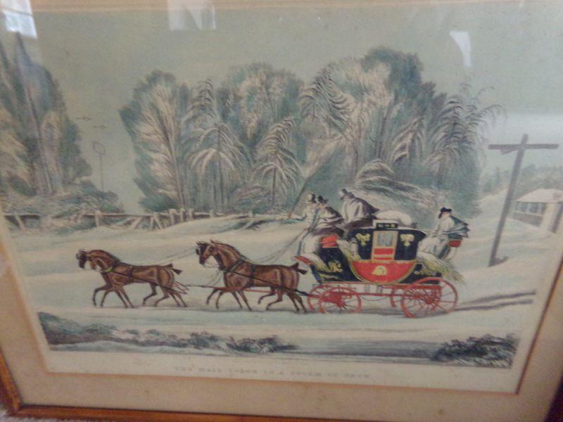 2 WINTER PICTURES WITH A HORSE CARRIAGE IN THE SNOW. THEY ARE DIFFERENT AND IN GOOD CONDITION. THERE IS ALSO A BLANK PICTURE FRAME THAT IS IN FAIR CONDITION.