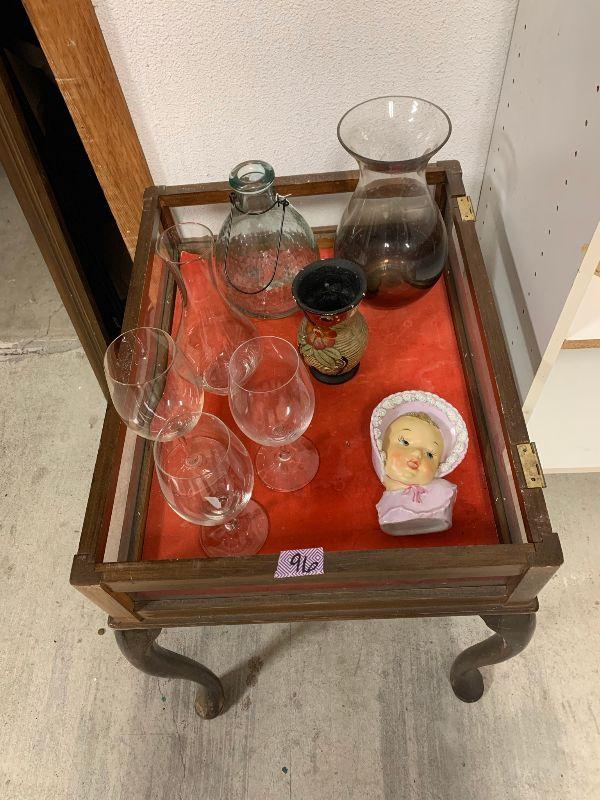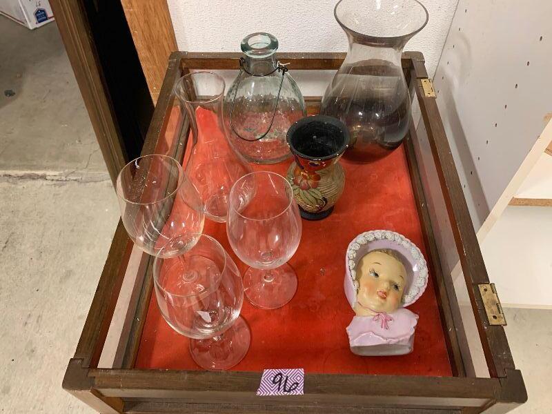 Vases: Chalkware vase, plus Glassware: Riedel decanter and 3 glasses