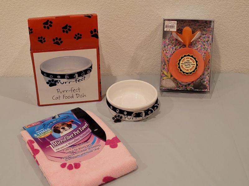 Lot 96: Kitty Bowl, Toy & Pet Towel