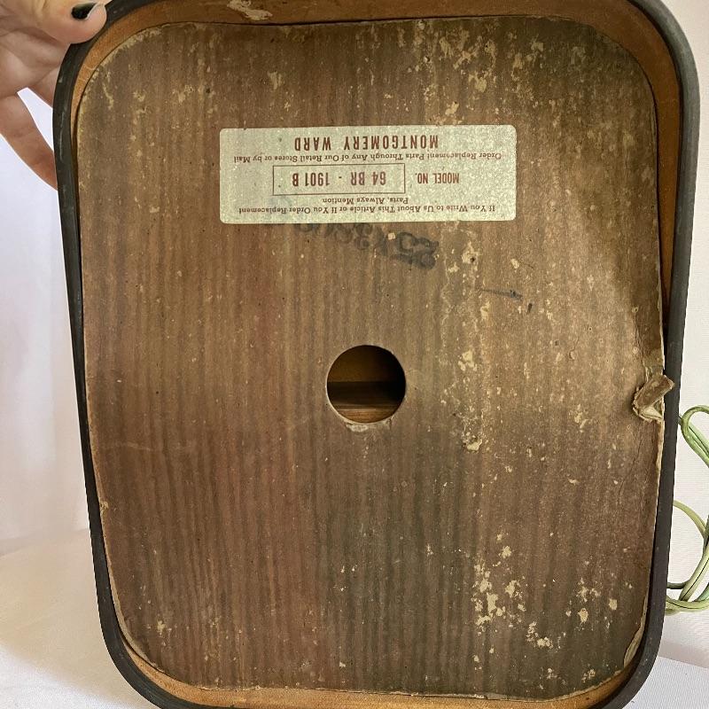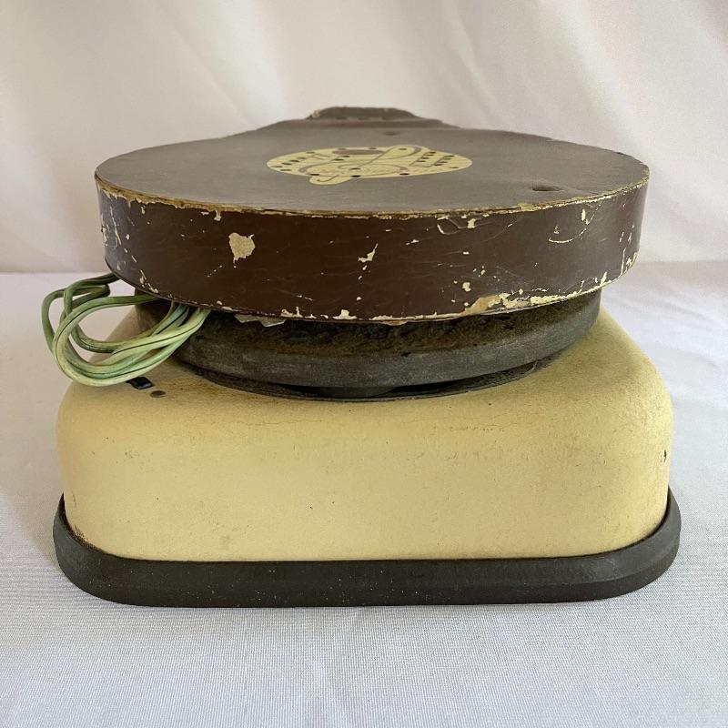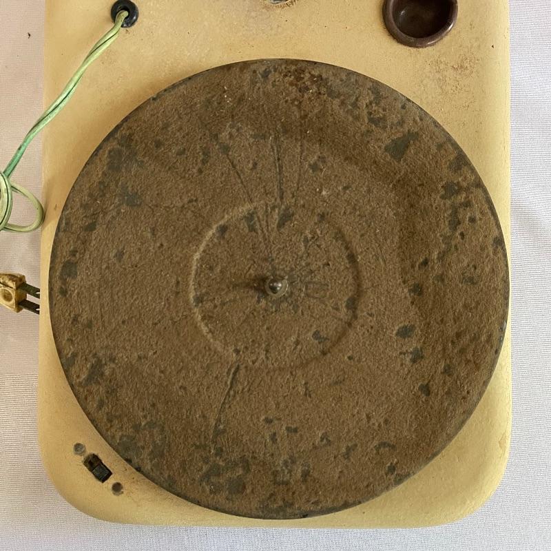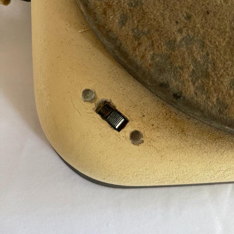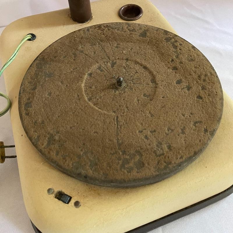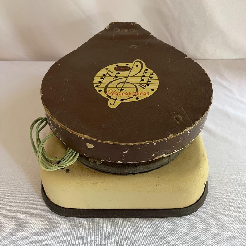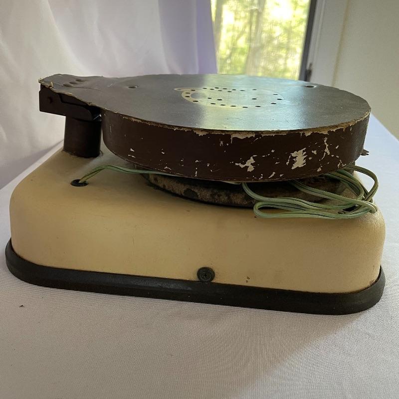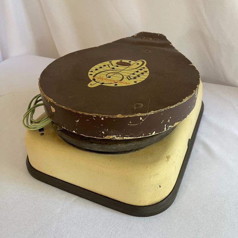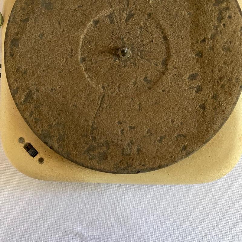 Portetec Phonocone turntable. The model number of this vintage turntable is 64 BR - 1901 B. When plugged in, it powered on and made a humming noise. The lid swivels 360 degrees.