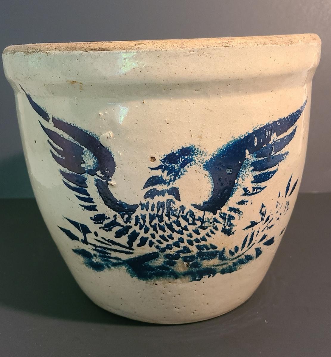 Lot 96: Stoneware Crocks, Eagle Cobalt Design/ Mug Handled