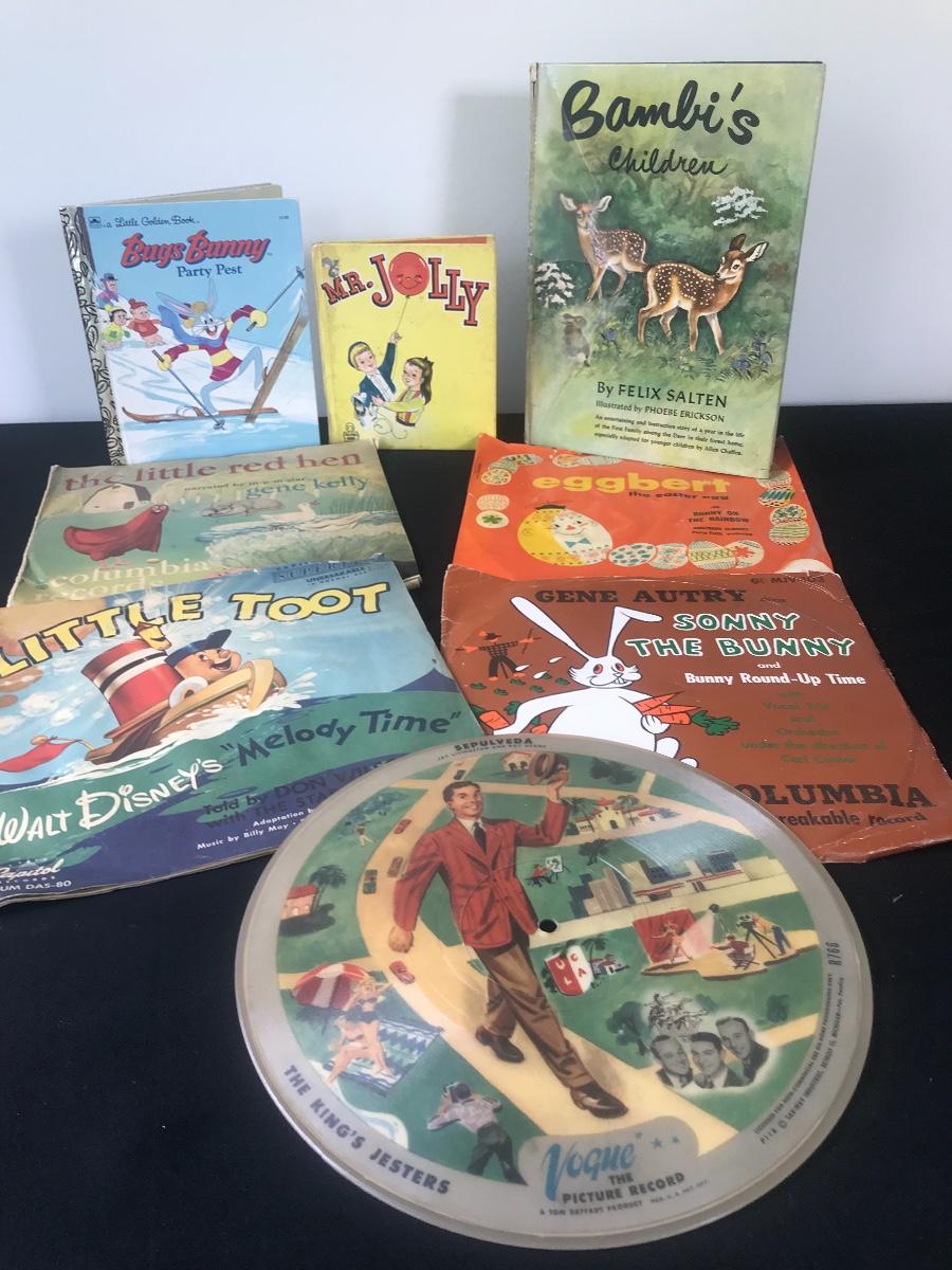 Children's story records including Walt Disney and Gene Autry. Bugs Bunny, Mr. Jolly, and Bambi round out this lot in regular book form. Please see all pictures for content of the lot, condition of the lot, and measurements if taken. Pictures are the best representation of the items listed and items are untested unless indicated in description. Thank you for looking and have fun bidding!