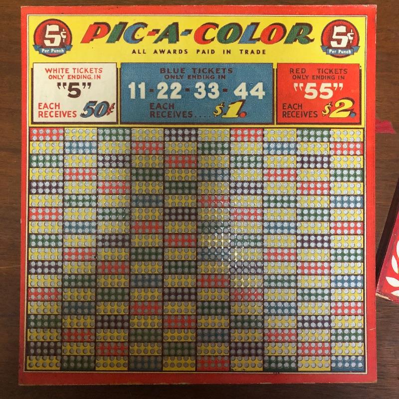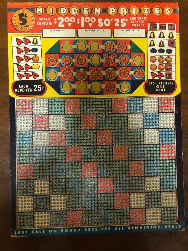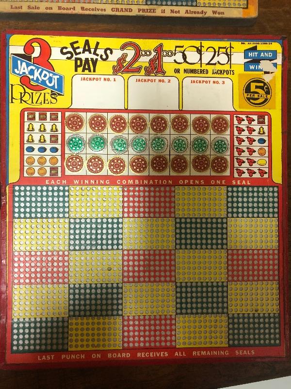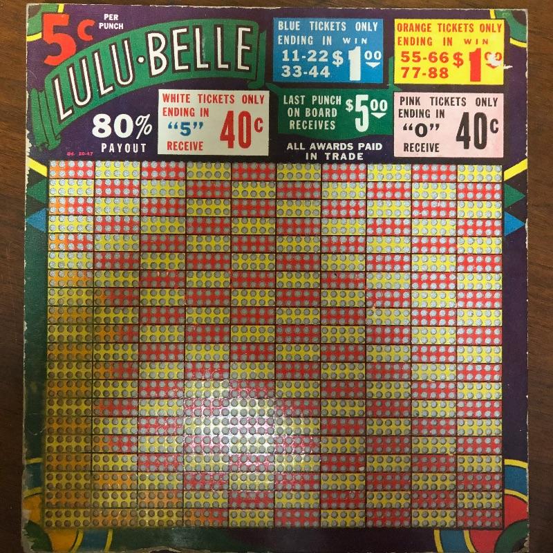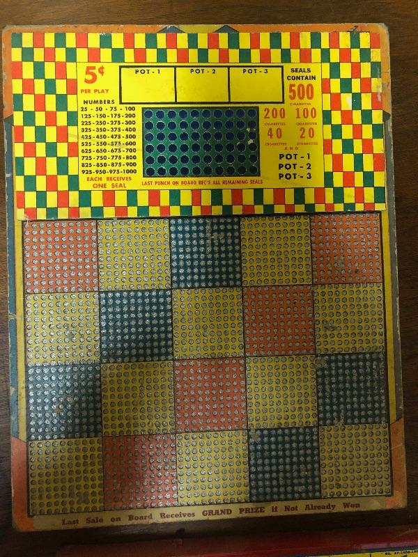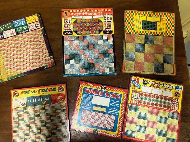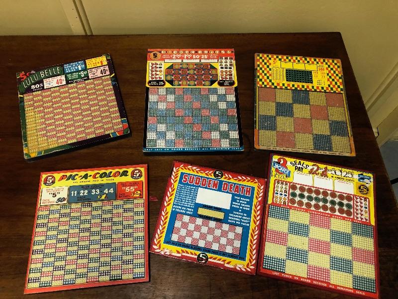6 boards: Lulu belle, pic-a-color, hidden prizes, sudden death, seals pay, nameless board: Vintage used condition