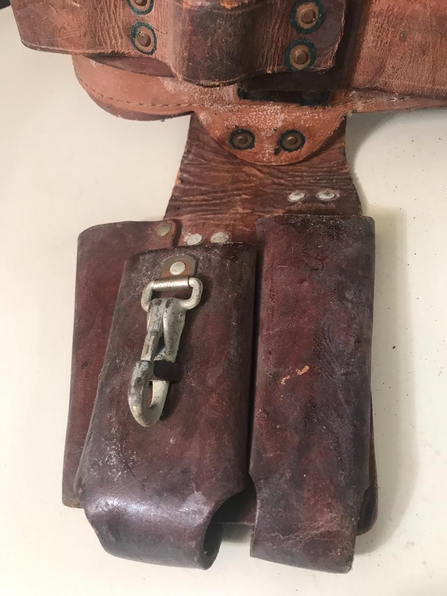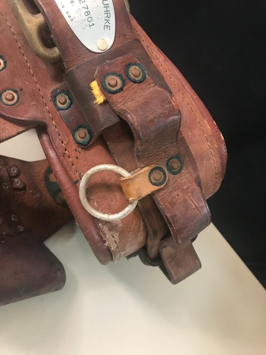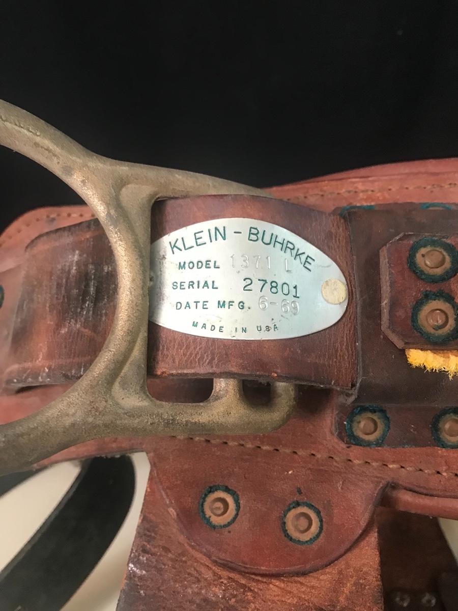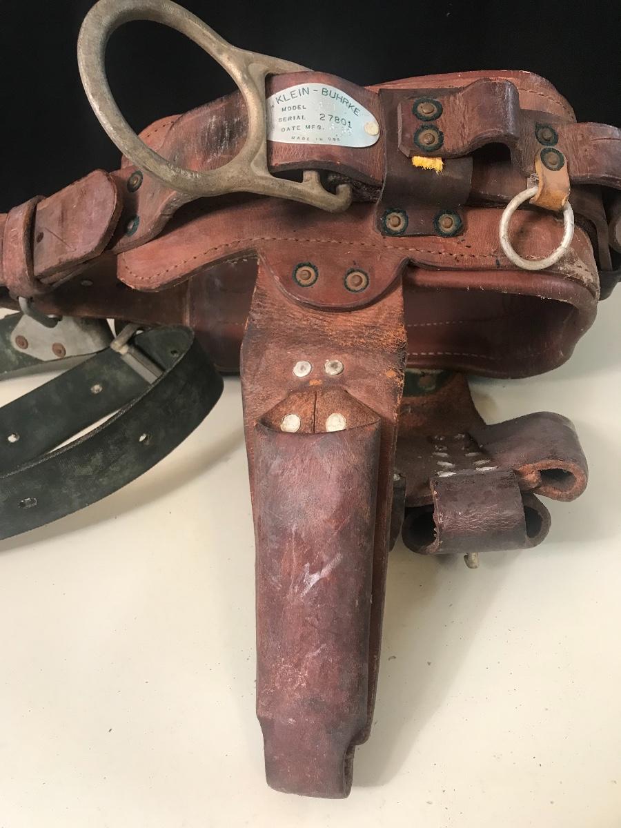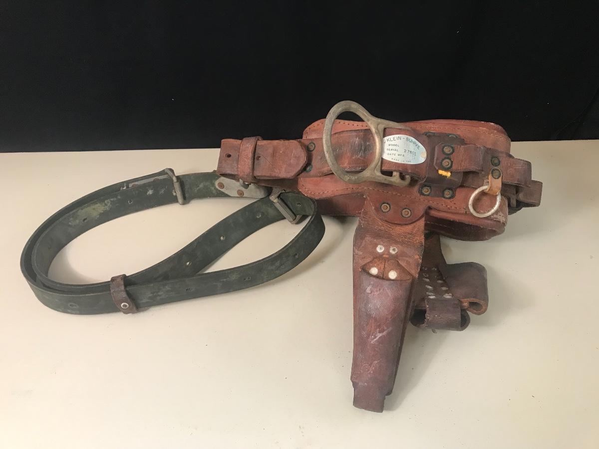 Vintage Leather Pole Climbing Gear/ Tool Belt - made by Klein - Buhrke in 1969. Please see all pictures as they are the best representation of the items. The pictures show condition, measurements if taken, and what is included in the lot. Due to the large amount that we photograph and the time frame, we are not always able to take measurements. All items unless noted, are pre-owned and have been used. If you purchased furniture, you must bring help. We do not allow one person to carry large furniture out on their own. Bring help, tools and a truck for the safety of our client’s homes, and your personal safety. Company policy. Thank you.