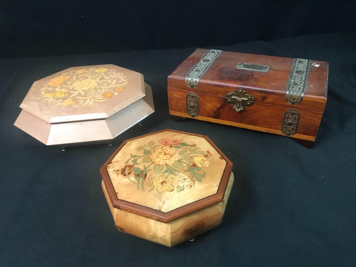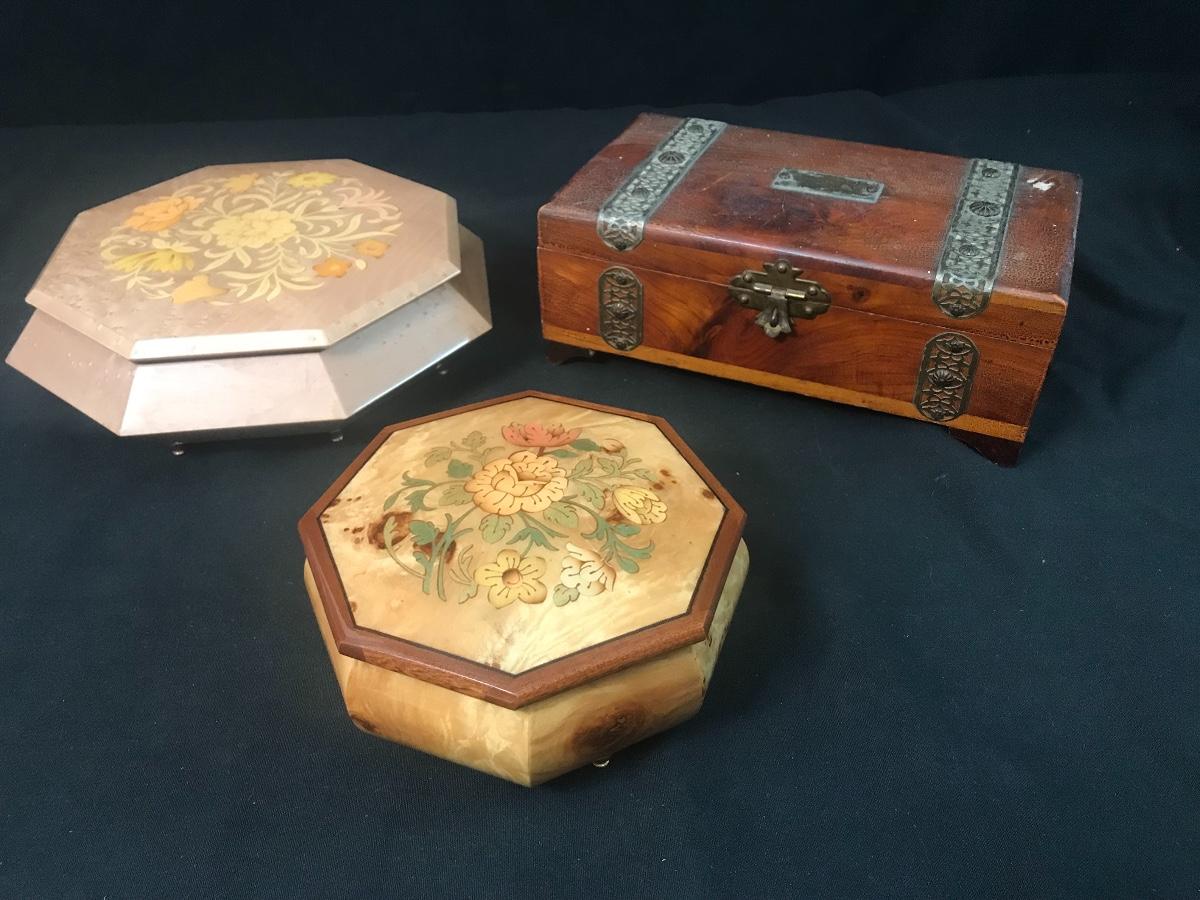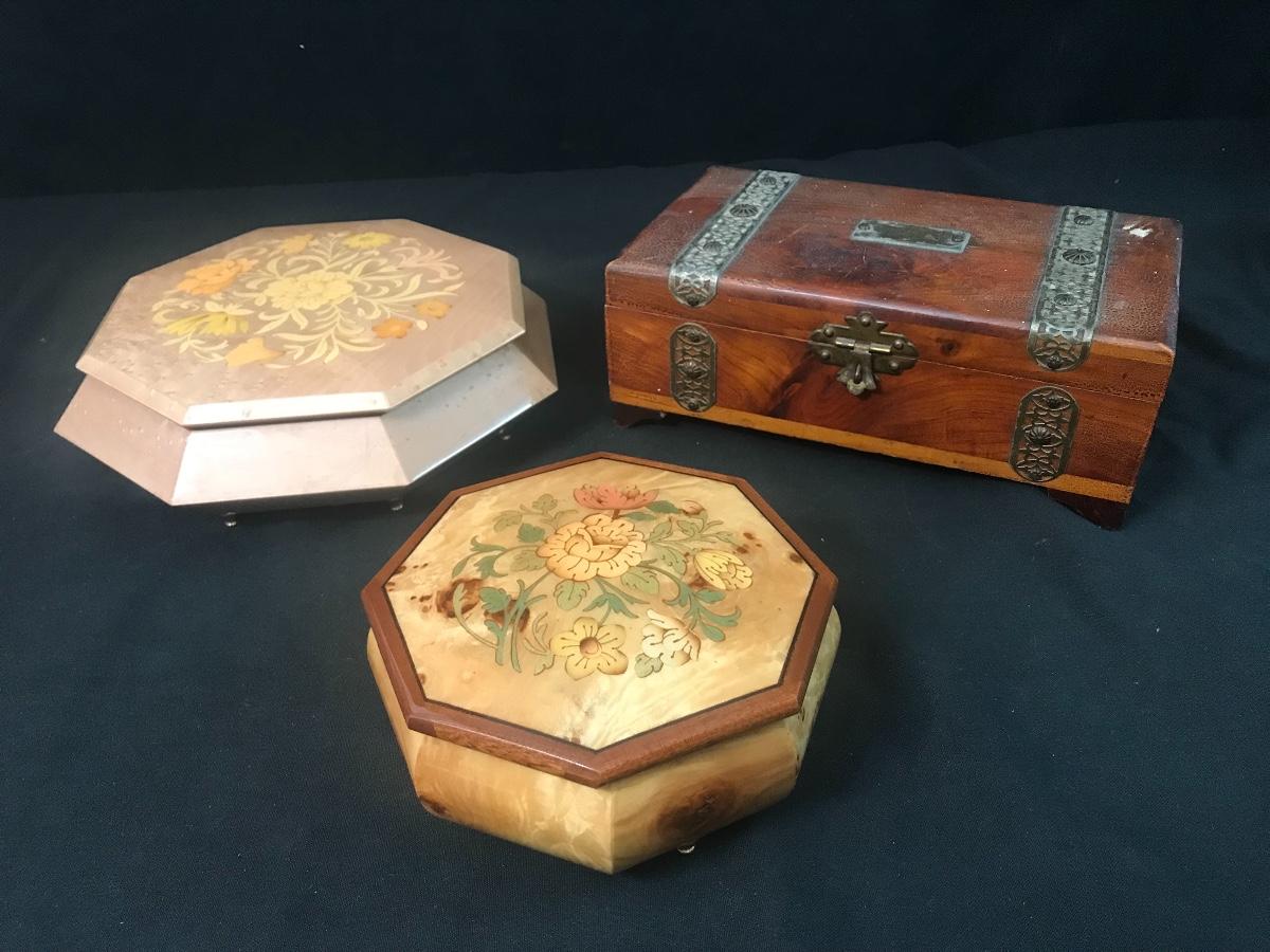 Lot 96: Three Jewelry Boxes - Two Octagon-Shaped Music Boxes Made in Italy
