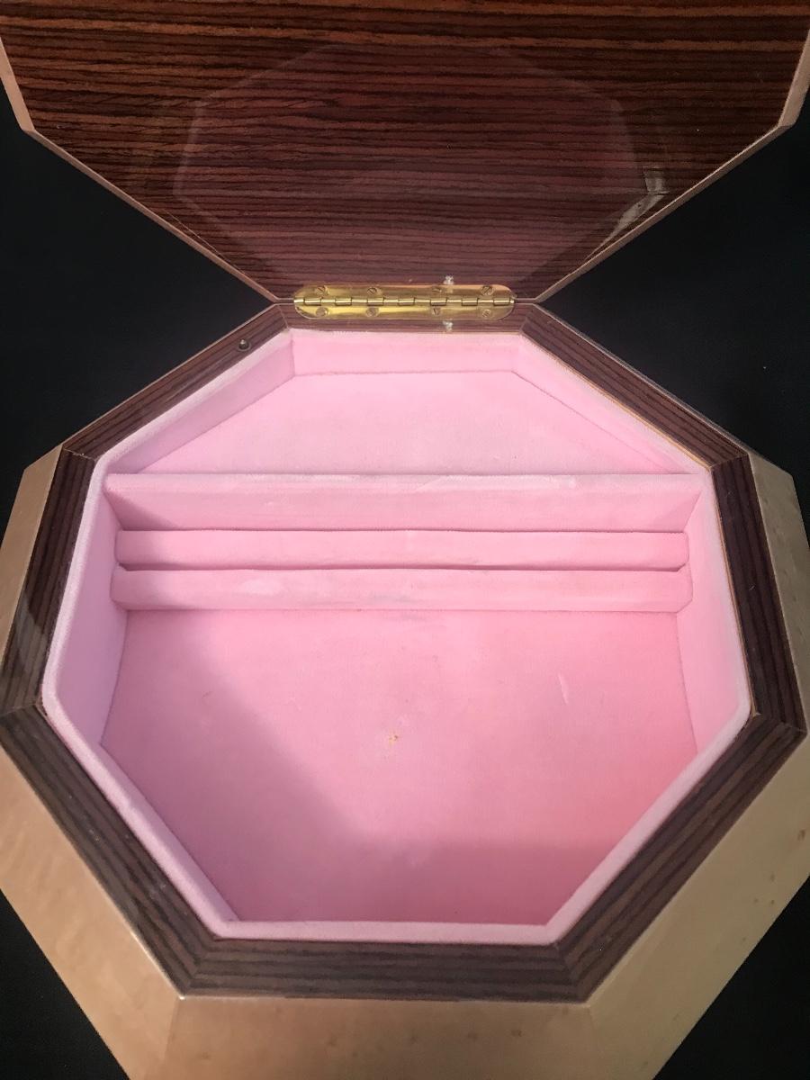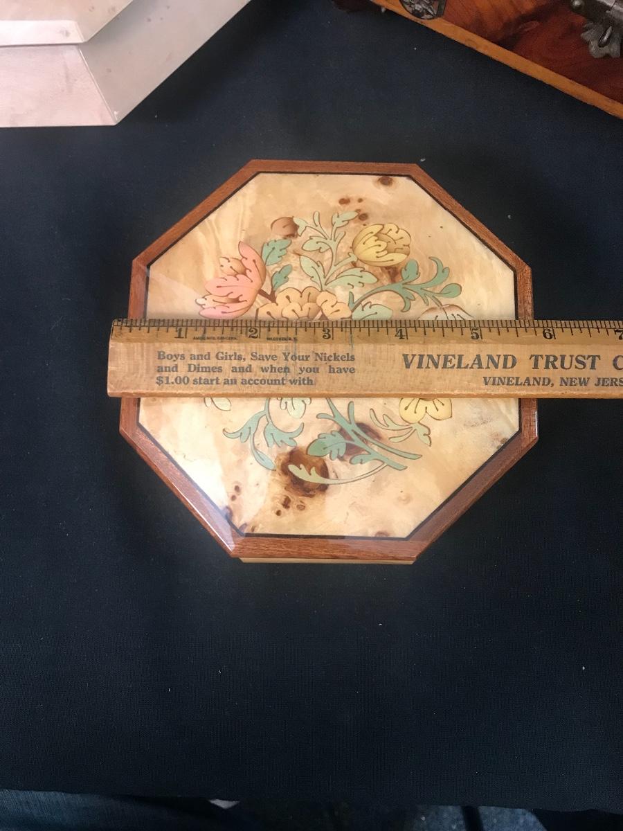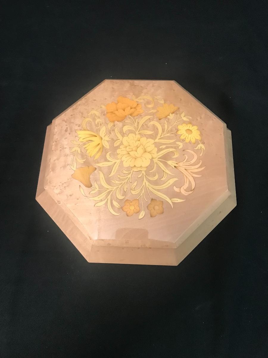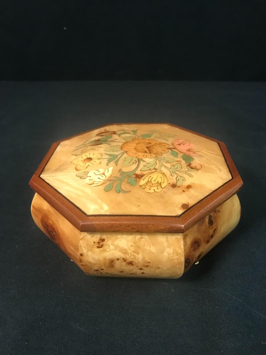 Three Jewelry Boxes - Two Octagon-Shaped Music Boxes Made in Italy Please see all pictures as they are the best representation of the items. The pictures show condition, measurements if taken, and what is included in the lot. Due to the large amount that we photograph and the time frame, we are not always able to take measurements. All items unless noted, are pre-owned and have been used. If you purchased furniture, you must bring help. We do not allow one person to carry large furniture out on their own. Bring help, tools and a truck for the safety of our client’s homes, and your personal safety. Company policy. Thank you.