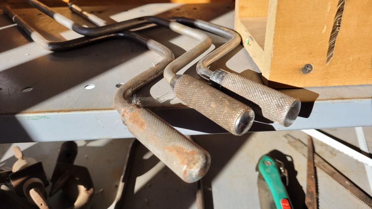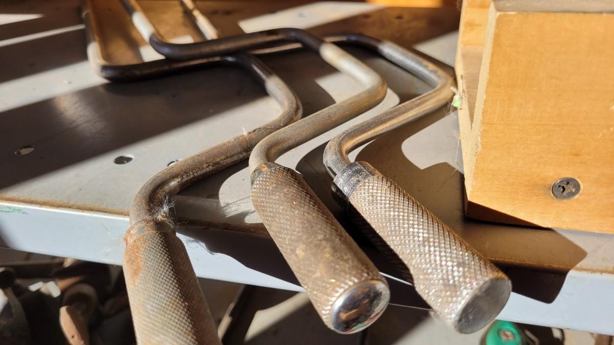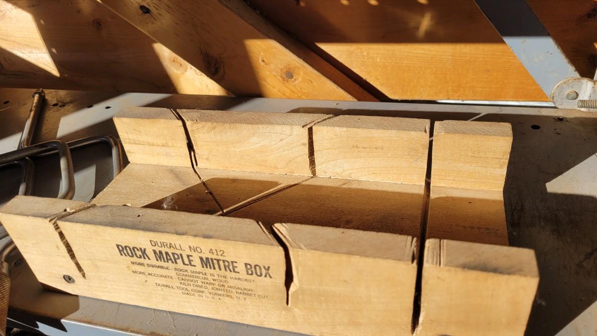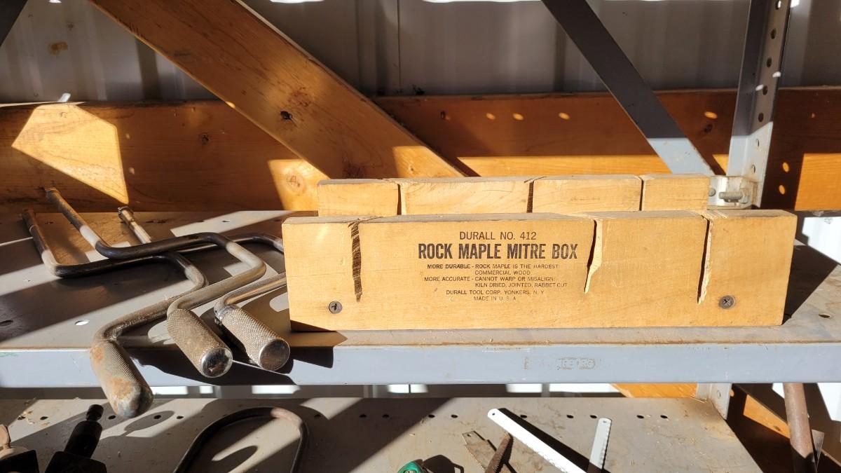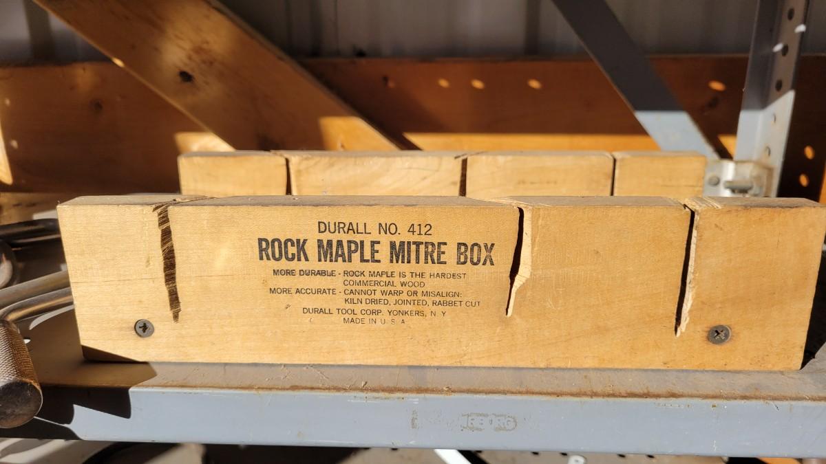 Lot 96: Vintage Maple Miter Box + (3) Hand Drills